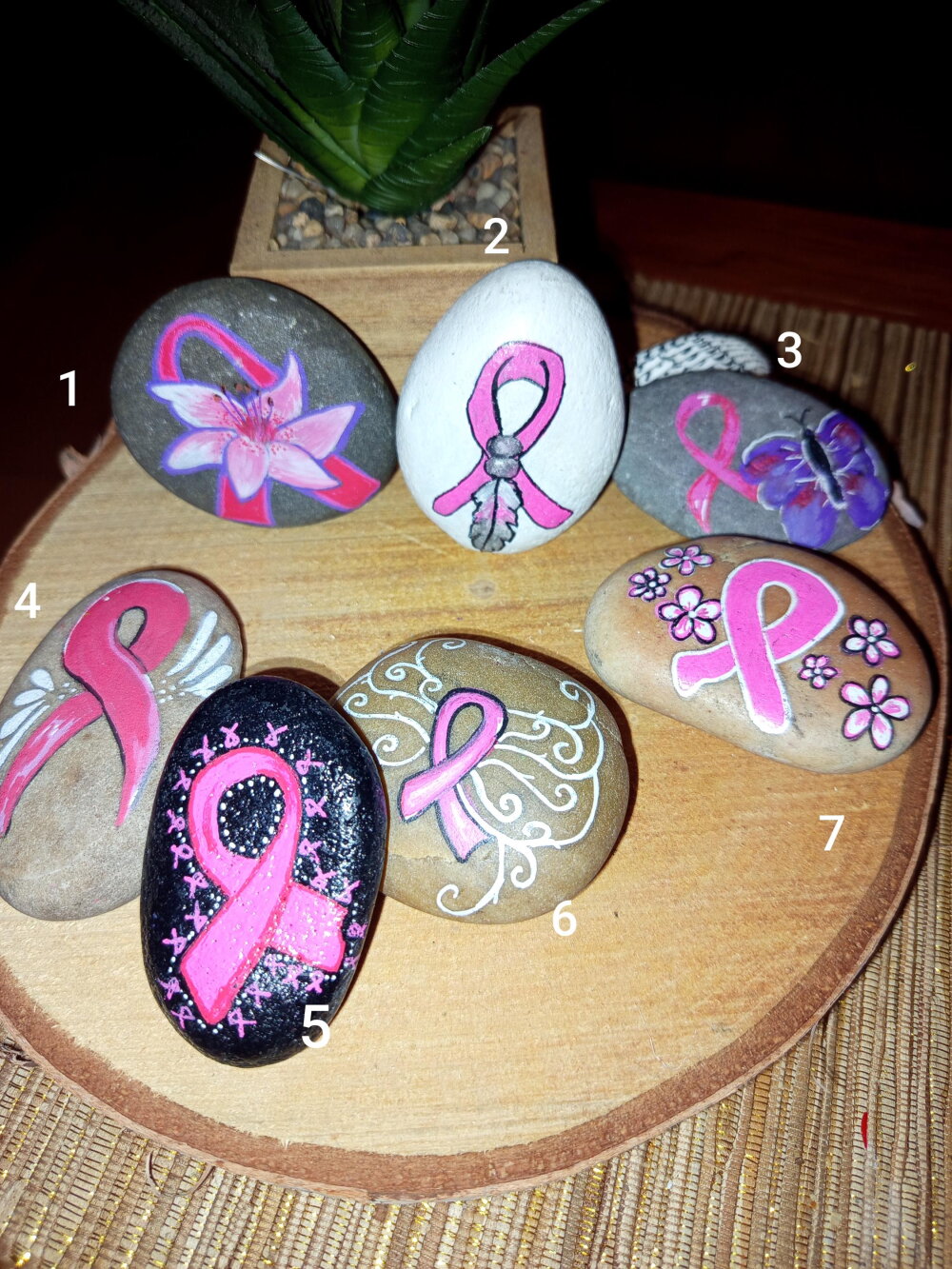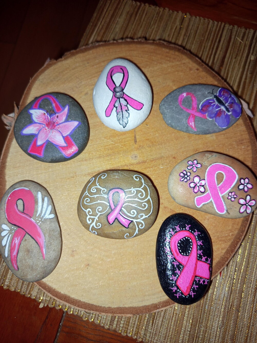 Galets peints octobre rose ruban rose peinture sur galet personnalisation pierre galet personnalisé pierre avec message soutien malade ami