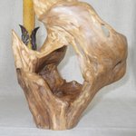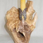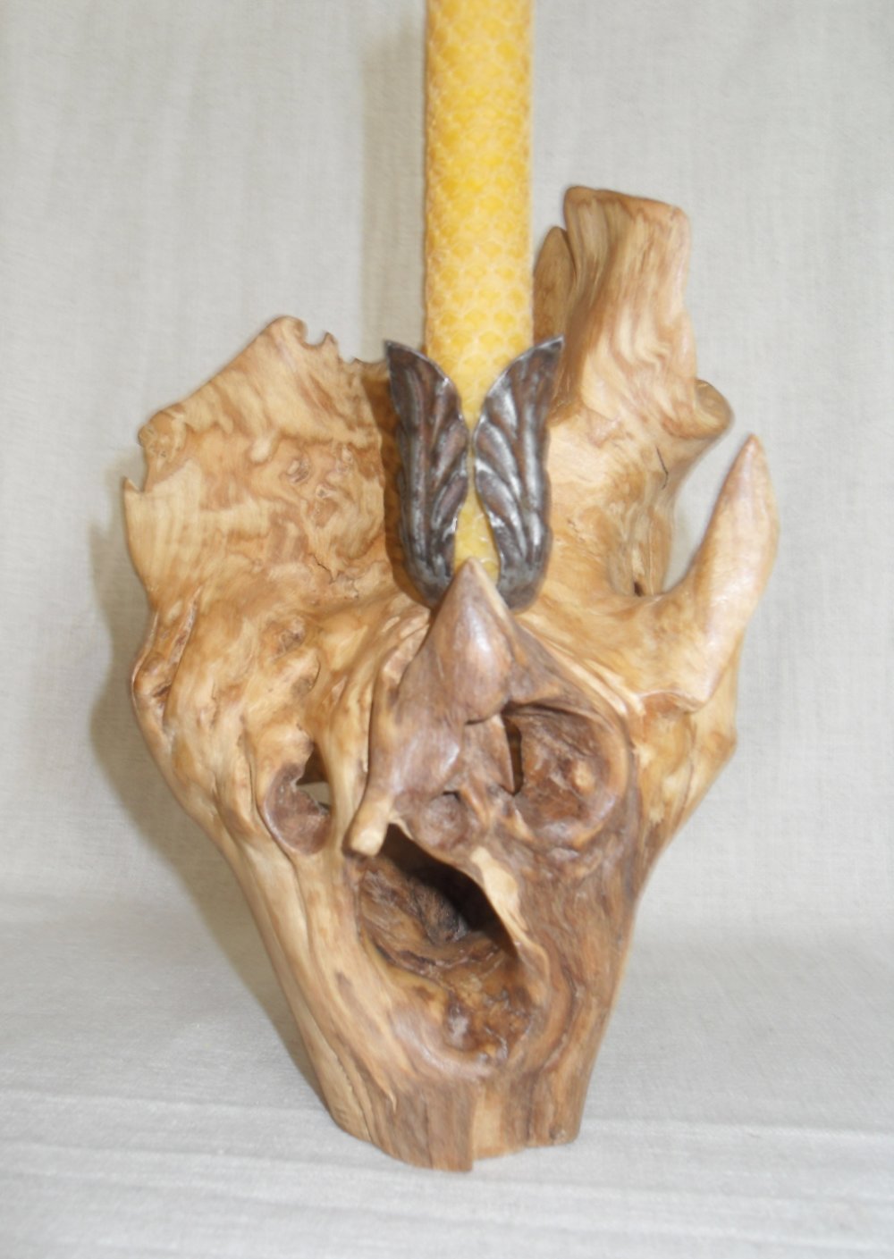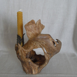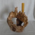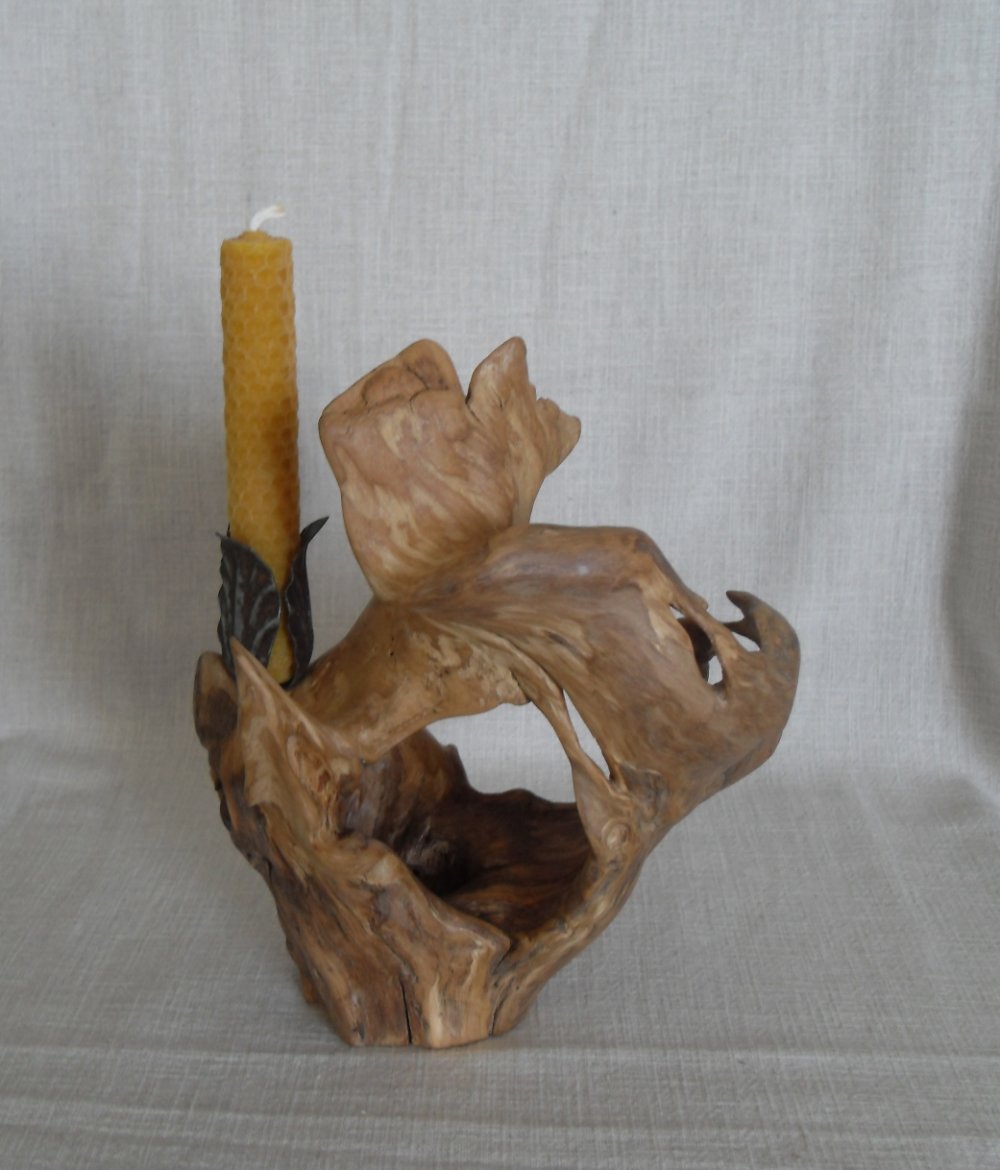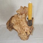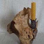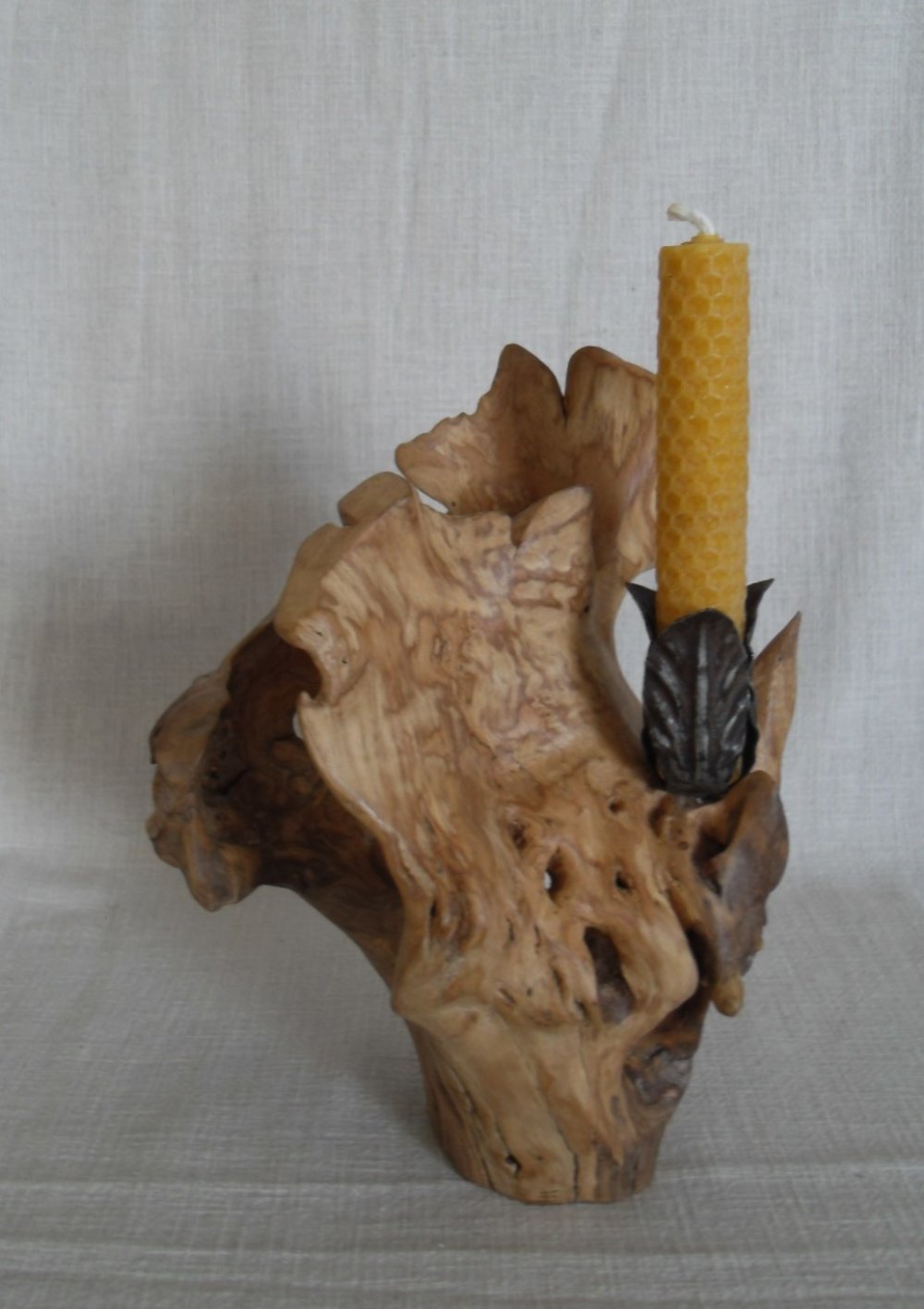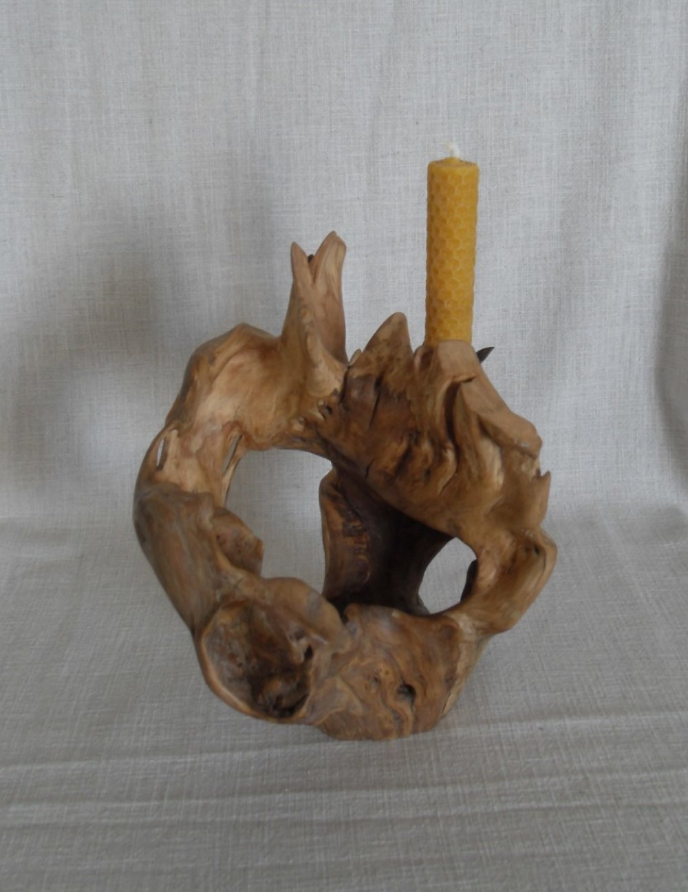 Bougeoir en bois de châtaigner fabriqué par mes soins avec un support pour une de mes bougie. Hauteur 23 cm, longueur 19,50 cm, largueur 13 cm.