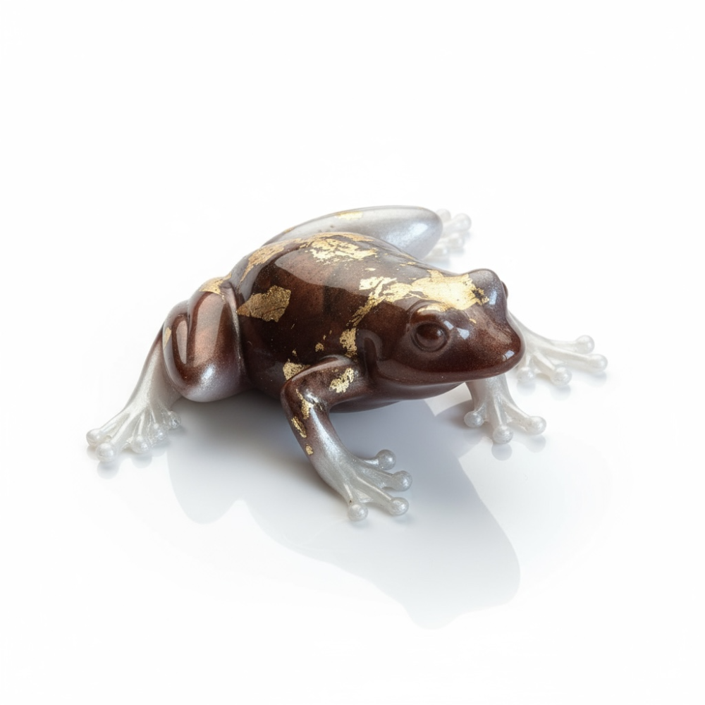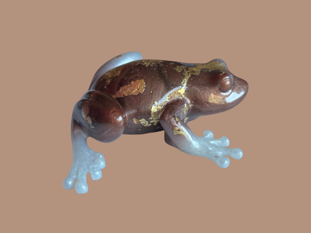 Tons marron et blancs nacrés. Grenouille double tons et feuilles d'or.
