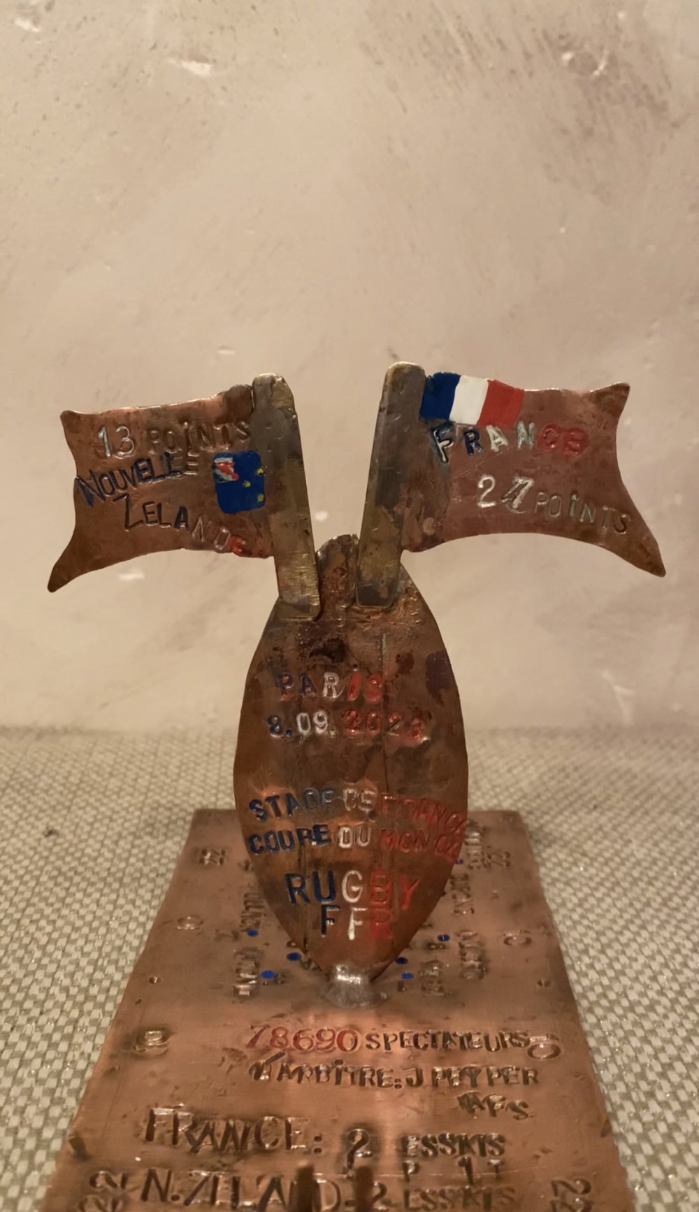 Terrain de rugby miniature en cuivre et laiton, ouverture Coupe du Monde 2023