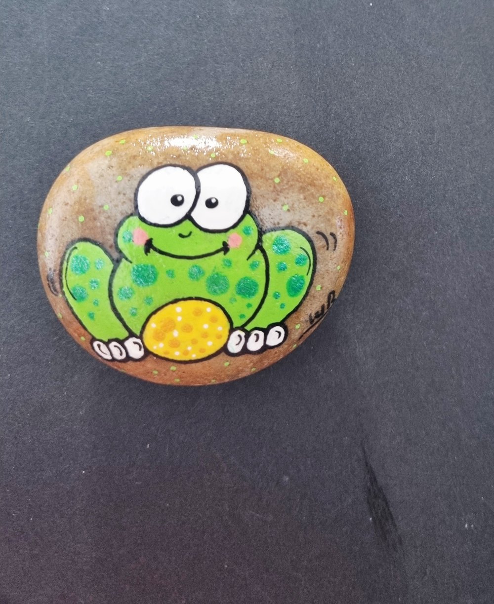 Joli petit galet grenouille rigolo