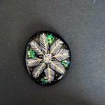 Joli petit galet de 6cm env peint en noir , orné de or , sequin et paillettes