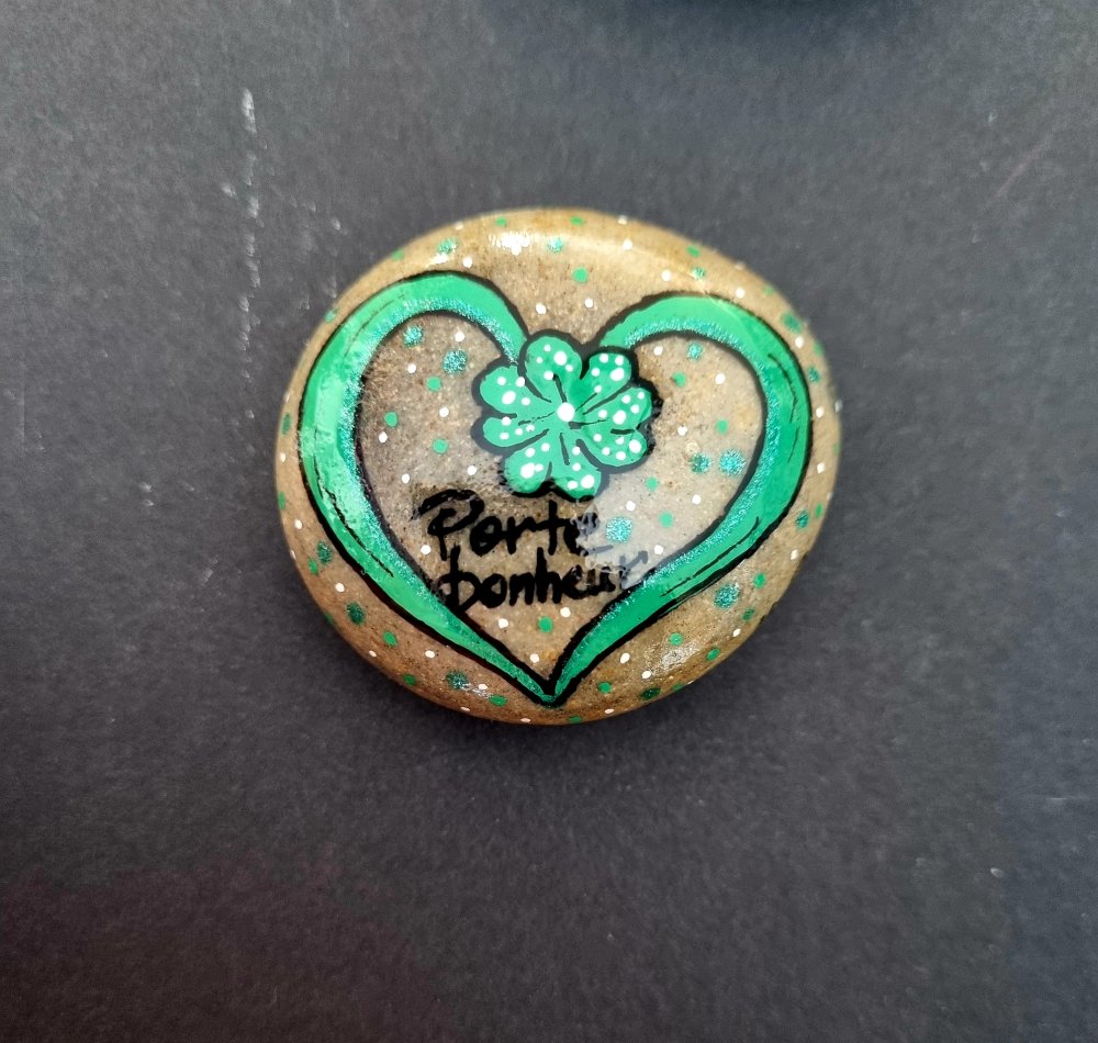 Joli galet trèfle magique