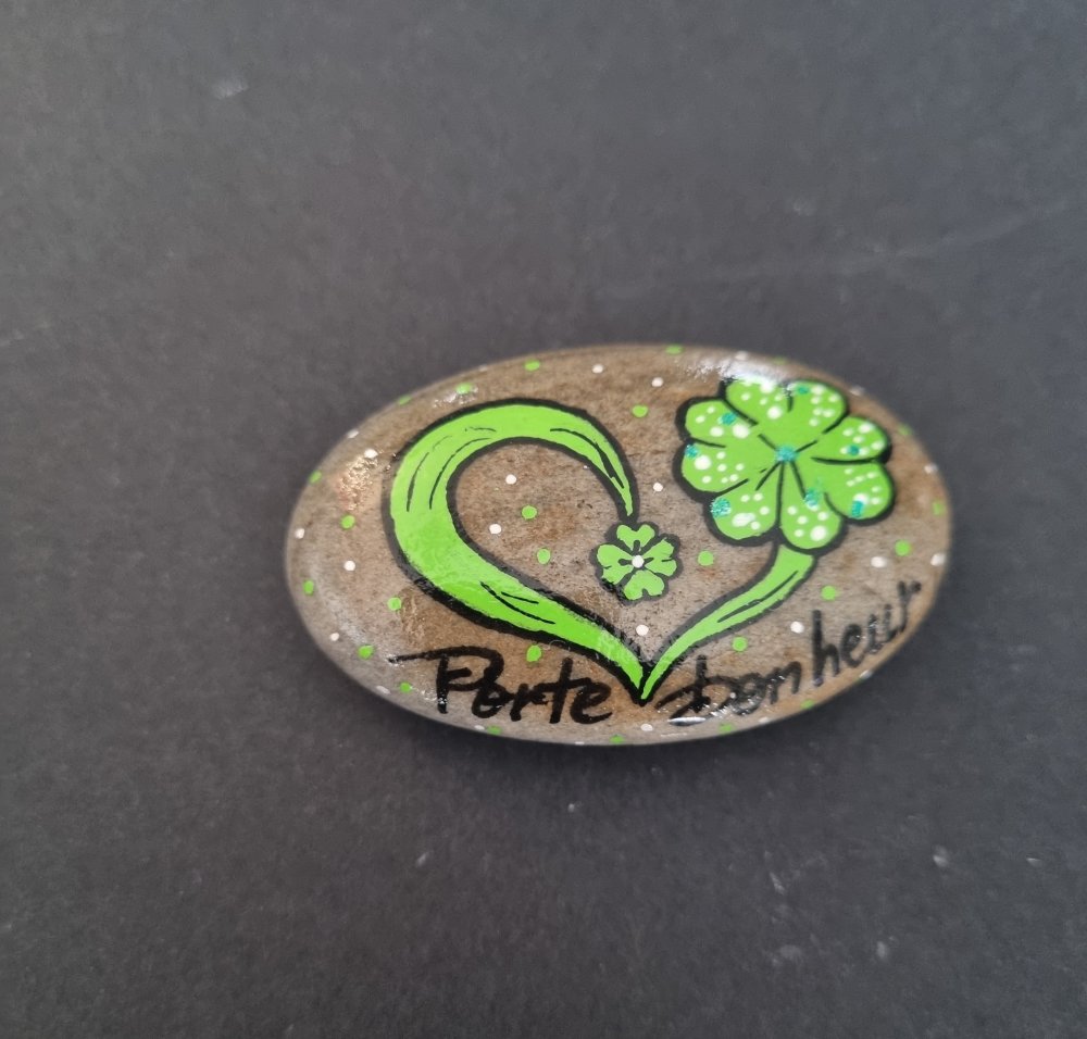 Joli galet trèfle magique