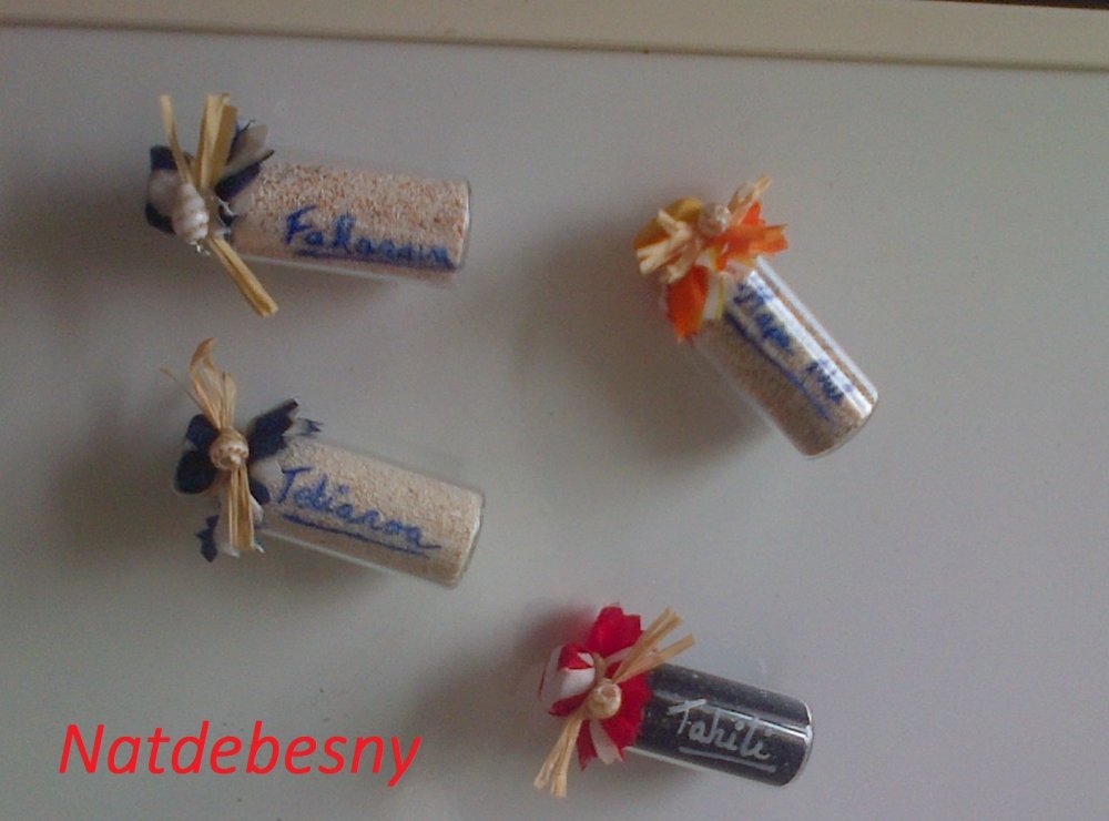 Magnets de réfrigérateur en sables naturels de Tahiti et ses îles au choix.