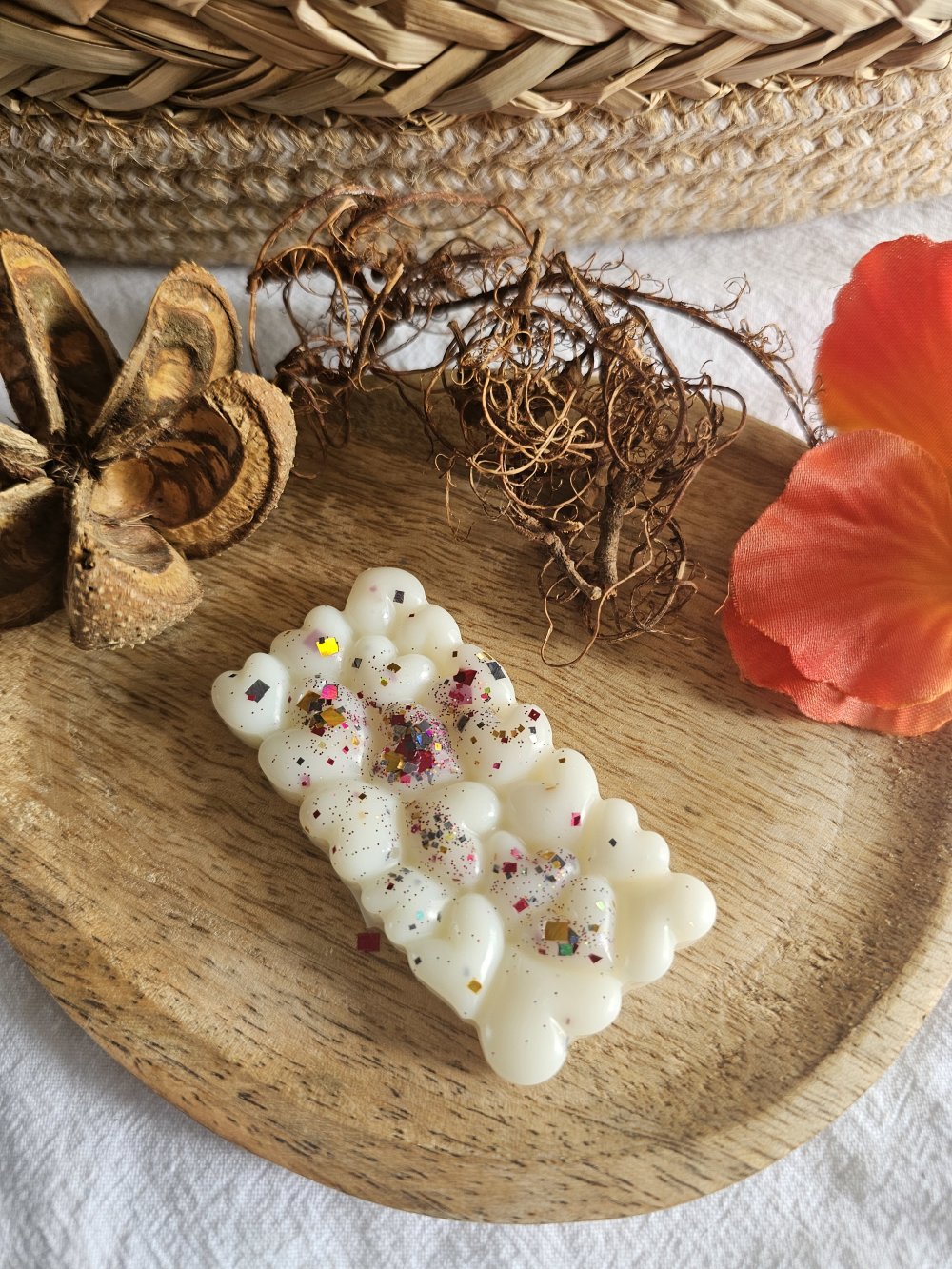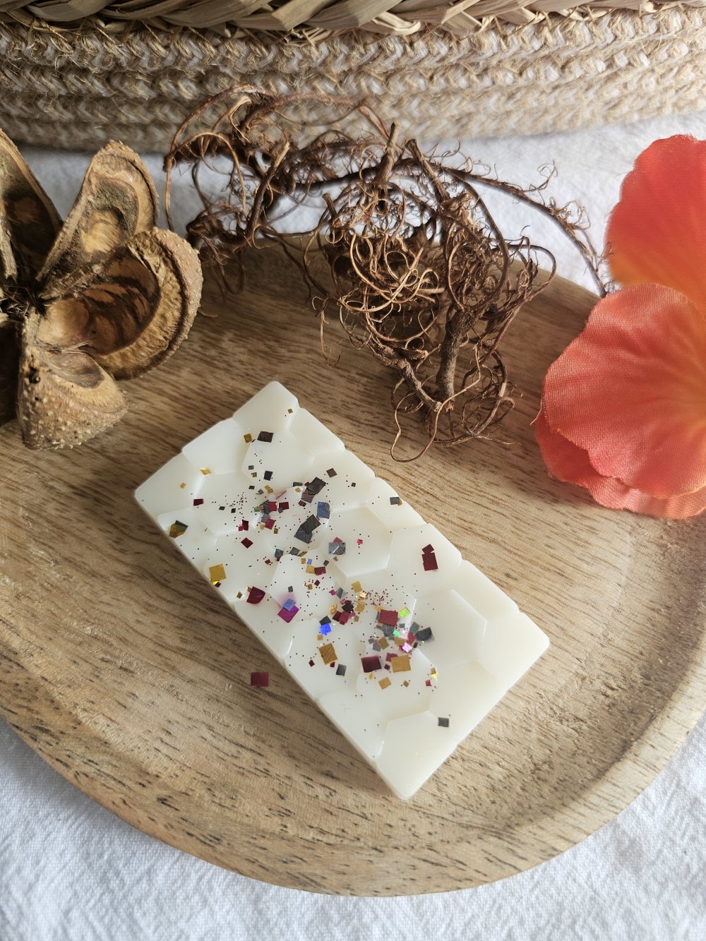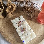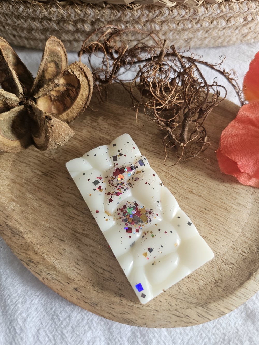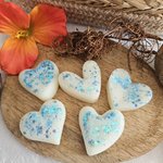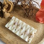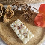 Fabriqué à la main en France à partir de cire d'olive 100% naturelle et colorée avec de la poudre de MICA et/ou paillettes.