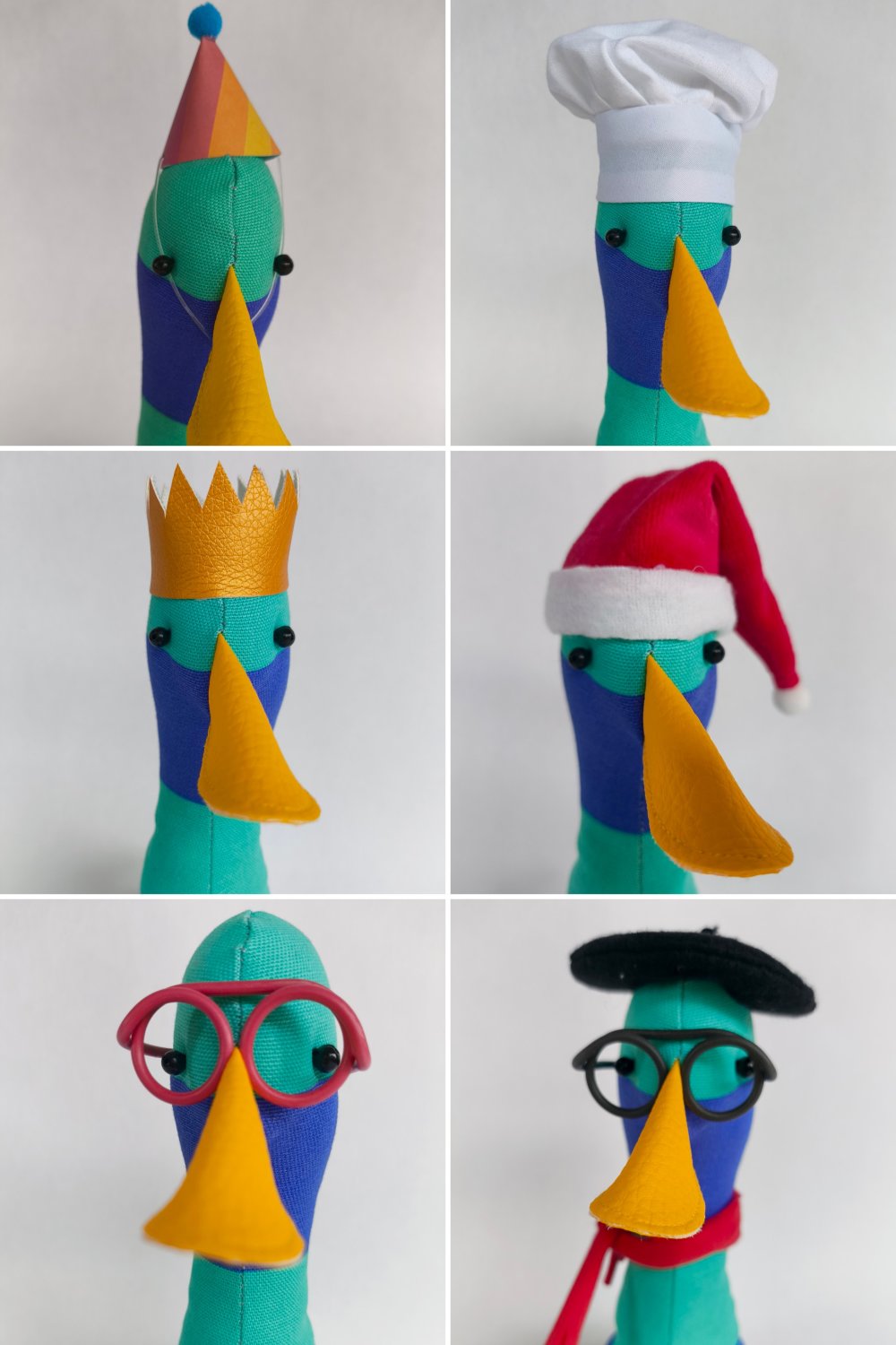 Les chapeaux conviennent à mes Cool Canards, à tout ce qui a une tête molle d'environ 5-6 cm de diamètre ! Ils ne sont pas conçus pour être joués en raison des petites pièces.