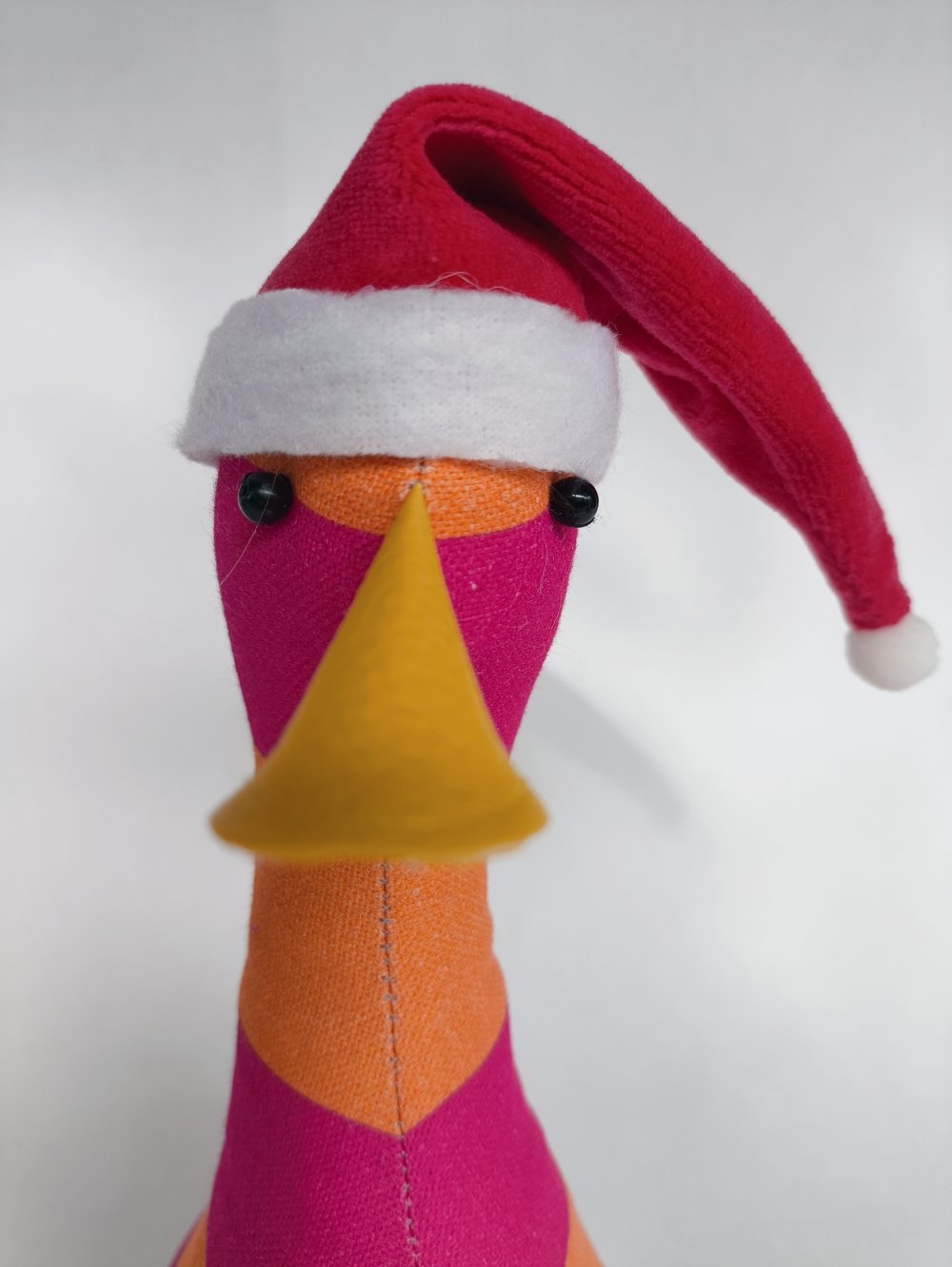 - Chapeau de fête en carton à motif et pompon avec élastique à placer sous le bec. (La couleur sera aléatoire, alors n'hésitez pas à m'envoyer un message si vous avez une demande spécifique !)