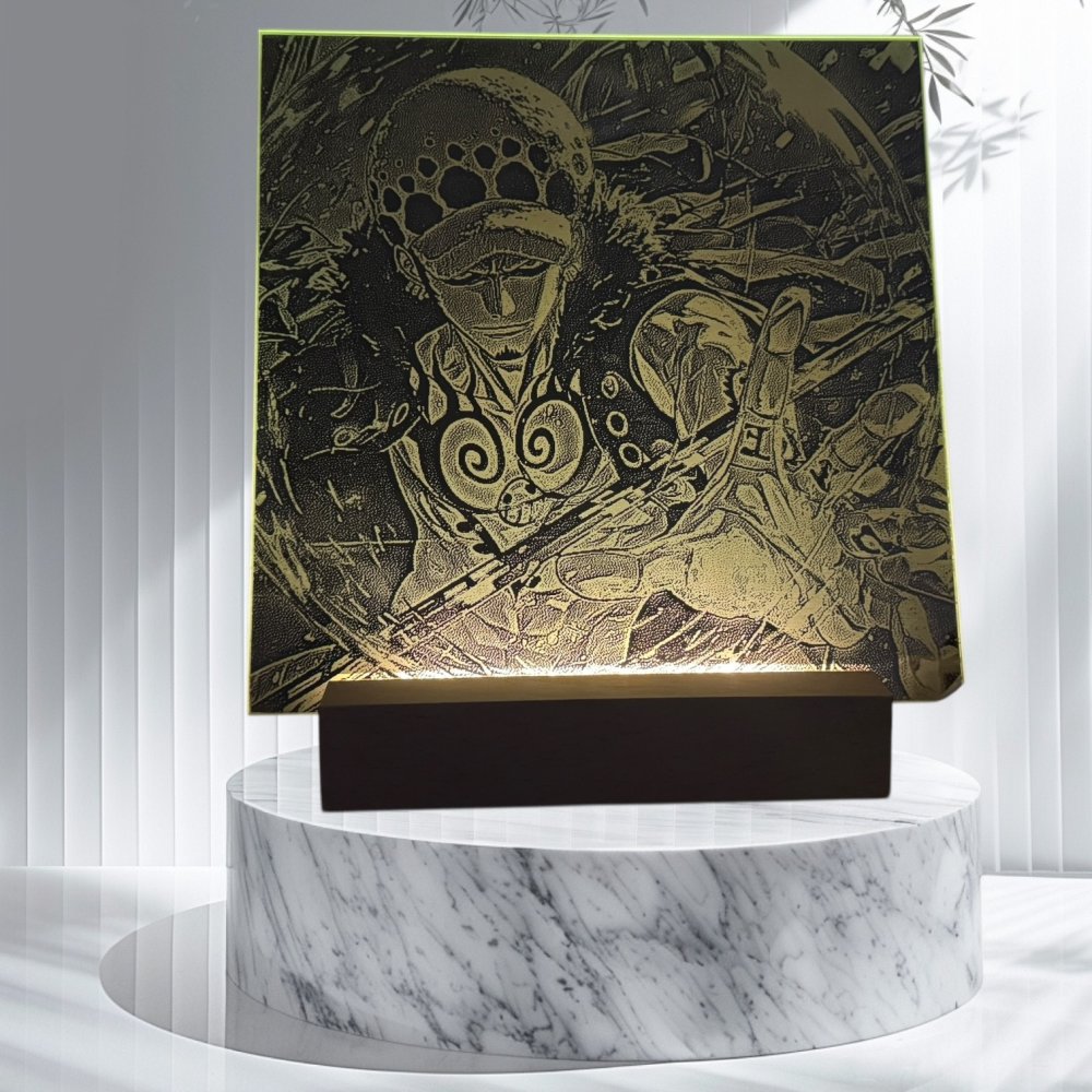 Découvrez notre miroir gravé à l'effigie de Law de One piece, un ajout élégant et moderne à votre chambre.