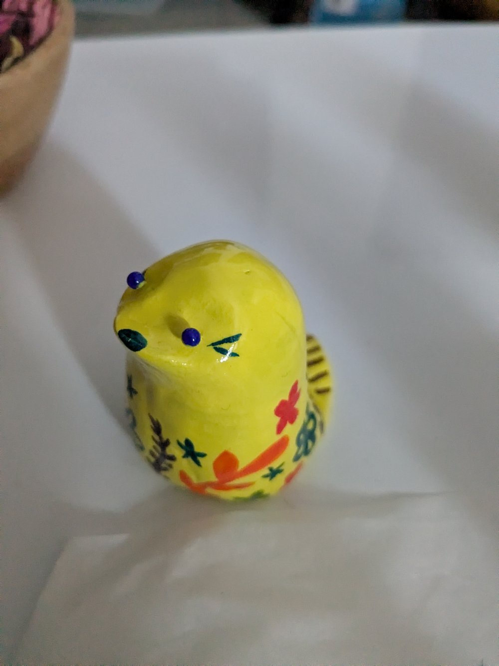 En argile modelée, peinte à la main et vernie.