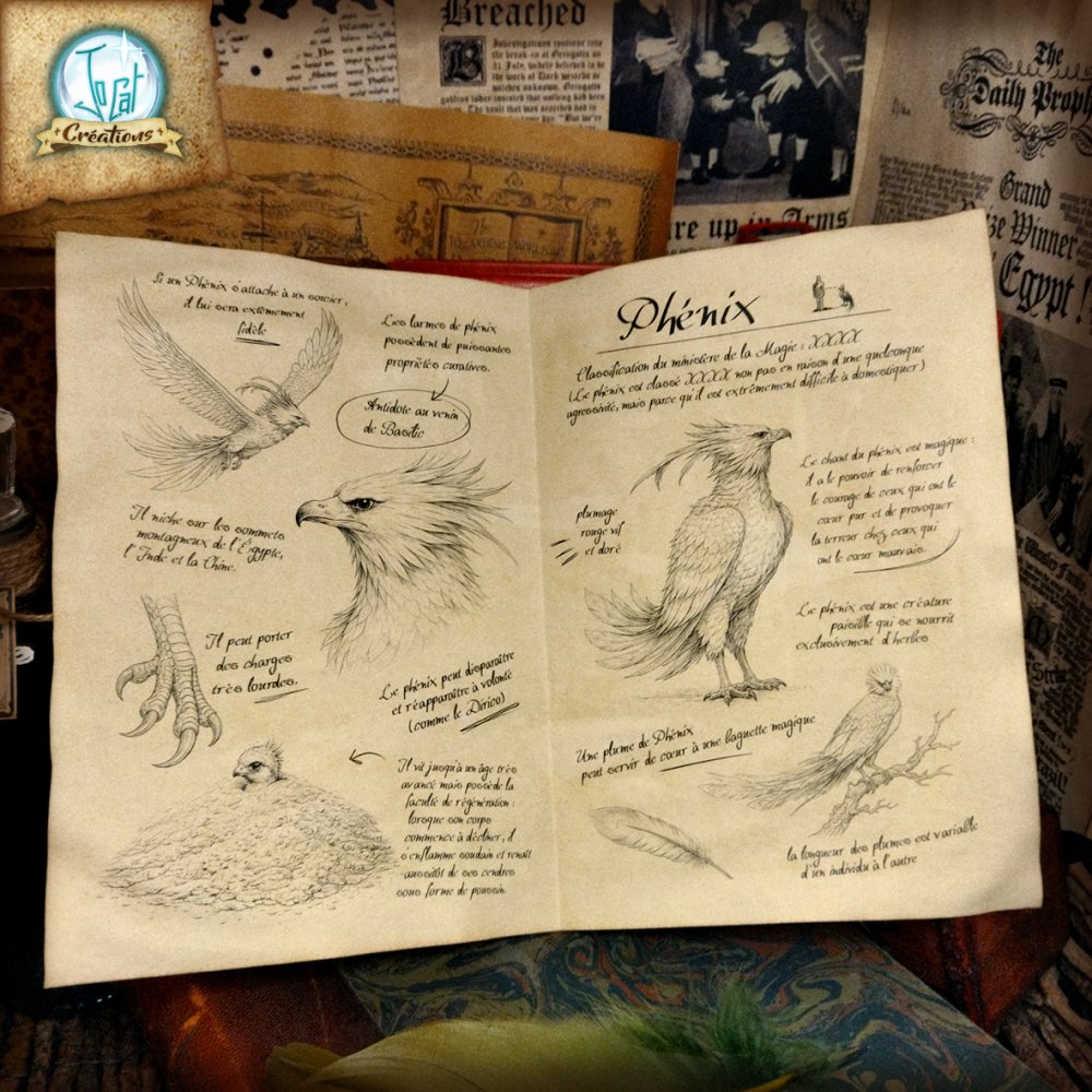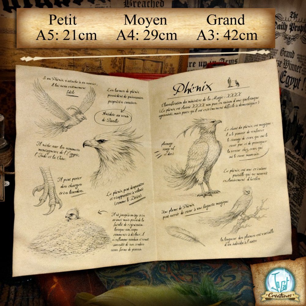 Recevez votre parchemin sur le Phénix ! En français entièrement lisible, imprimé sur un parchemin artisanal (effet des deux côtés).