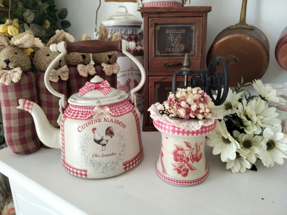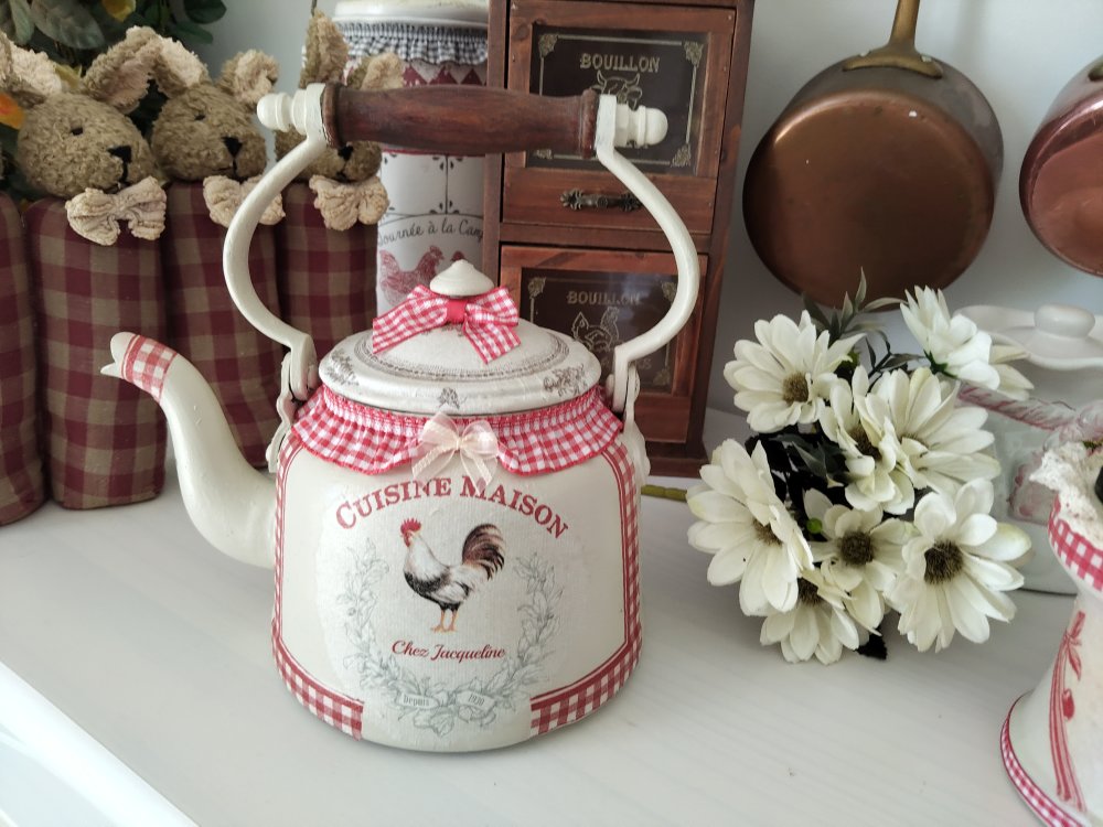 Petite bouilloire ancienne " Chez Jacqueline " Création - Au grenier cosy -