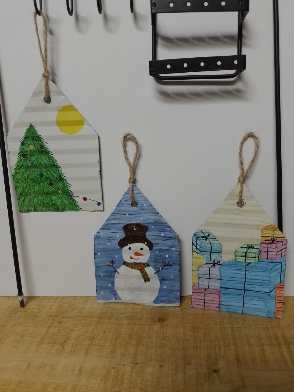 Après les avoir découpées, je les ai peintes aux couleurs de Noël.