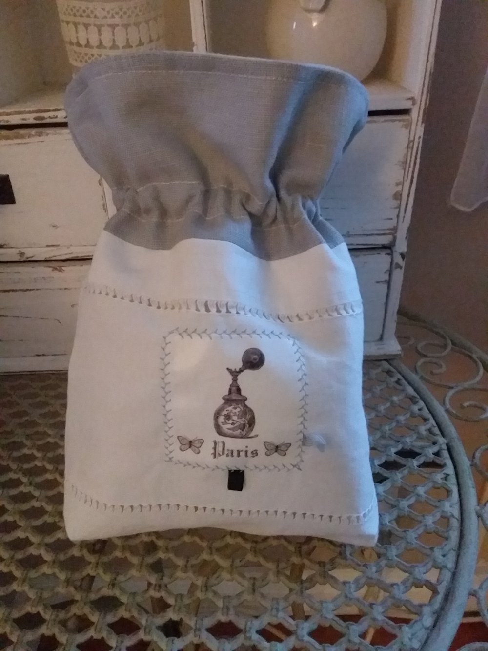 Pochon en drap ancien et lin gris