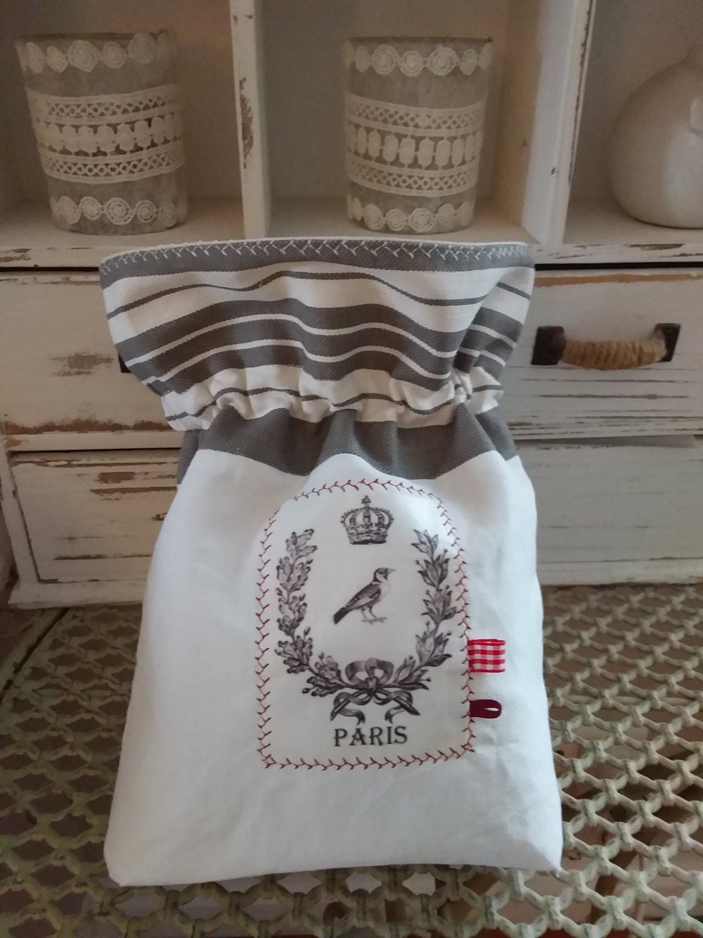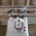 Pochon en drap ancien et toile à matelas