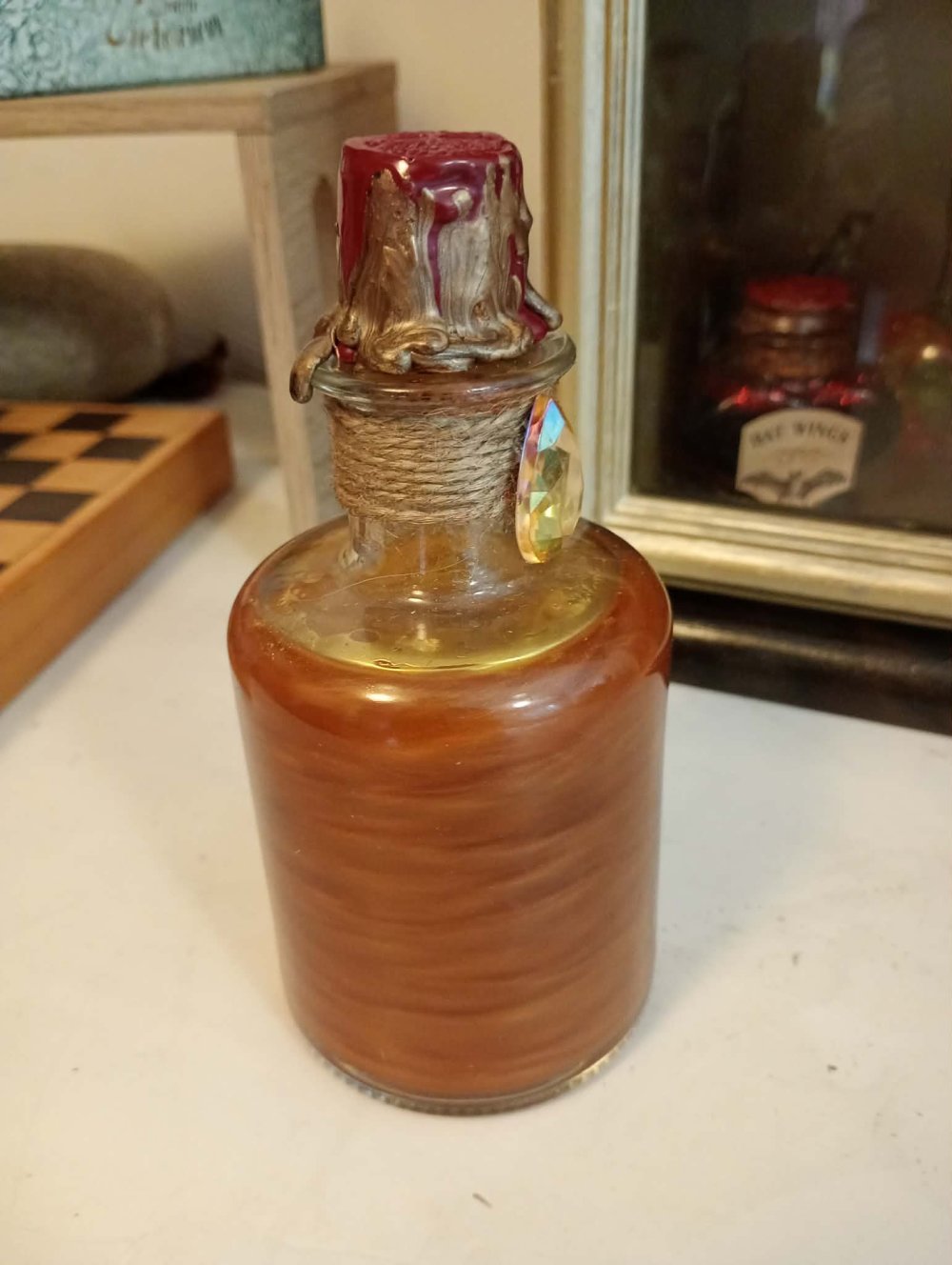 Cabinets de curiosités, potions magiques ludiques et décoratives, bouteilles décorées lumineuses ou non, boîtes livres, tableaux, bijoux, porte clefs, bougies moulées, livre vivant, couture.