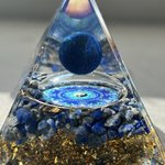 Pyramide orgonite artisanale intégrant des éclats de lapis-lazuli naturel, des inclusions métalliques dorées et un symbole Yin & Yang au centre, représentant l’équilibre et l’harmonie des énergies. Sa forme pyramidale est reconnue pour favoriser la circulation et l’amplification énergétique.