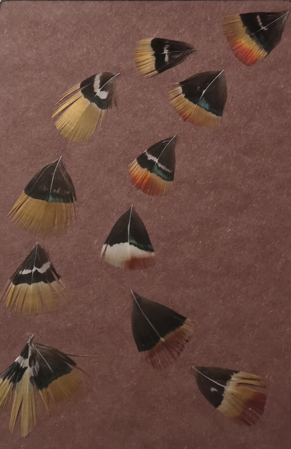 Ce cadre est composé avec différentes plumes naturelles de faisan qui sont sous verre.