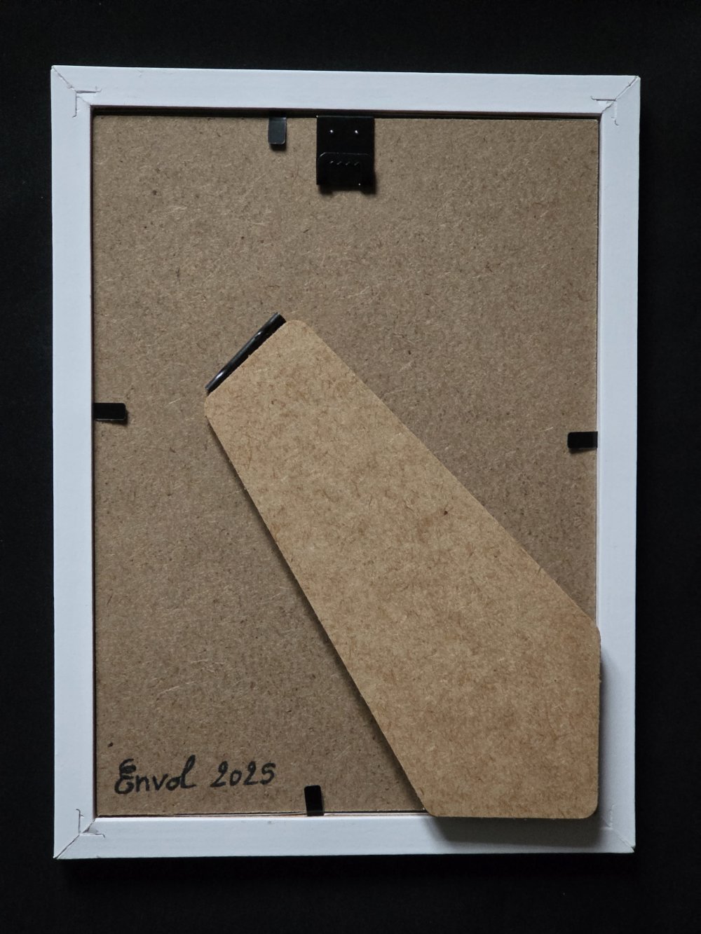 Le cadre en bois mesure 20 x 15 cm et fait 1 cm d'épaisseur.