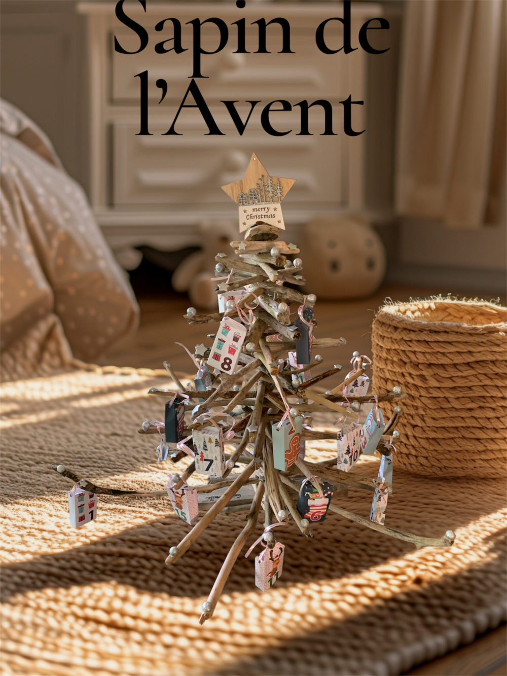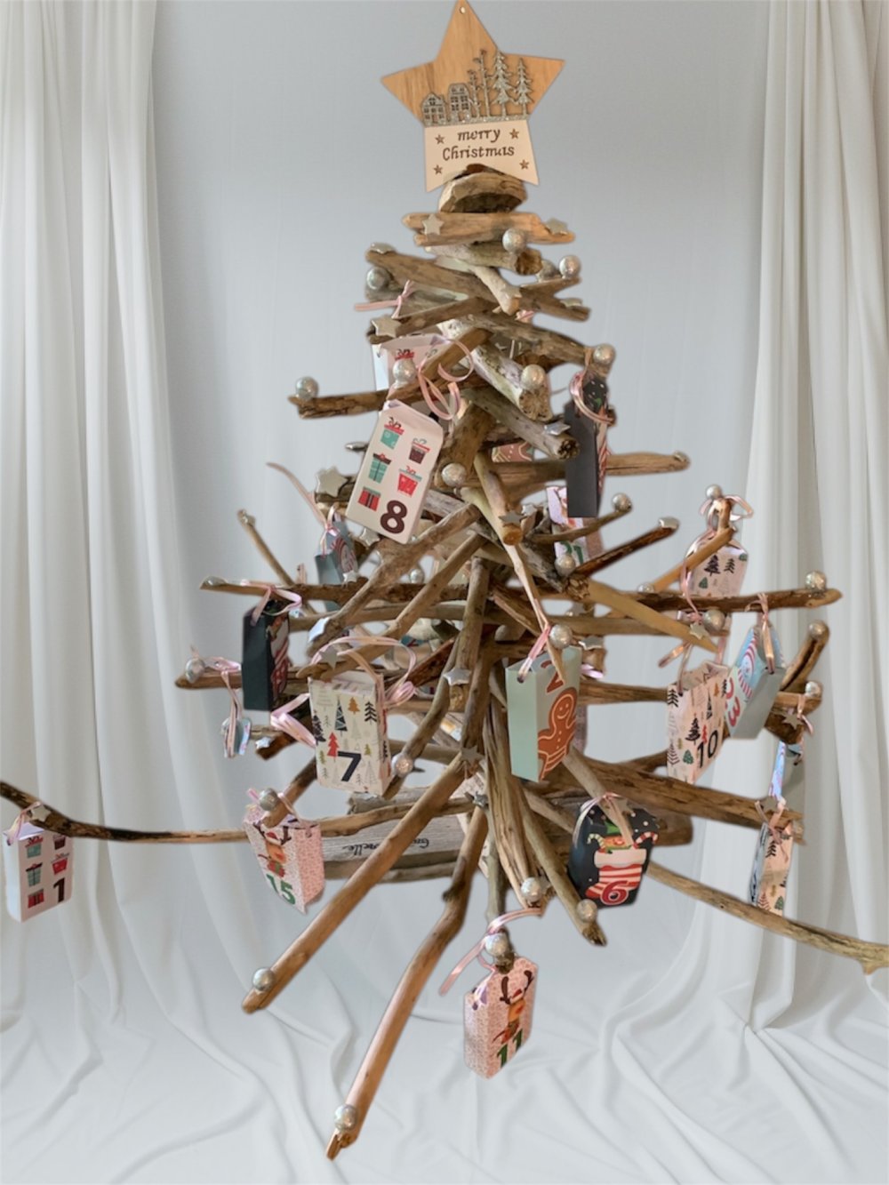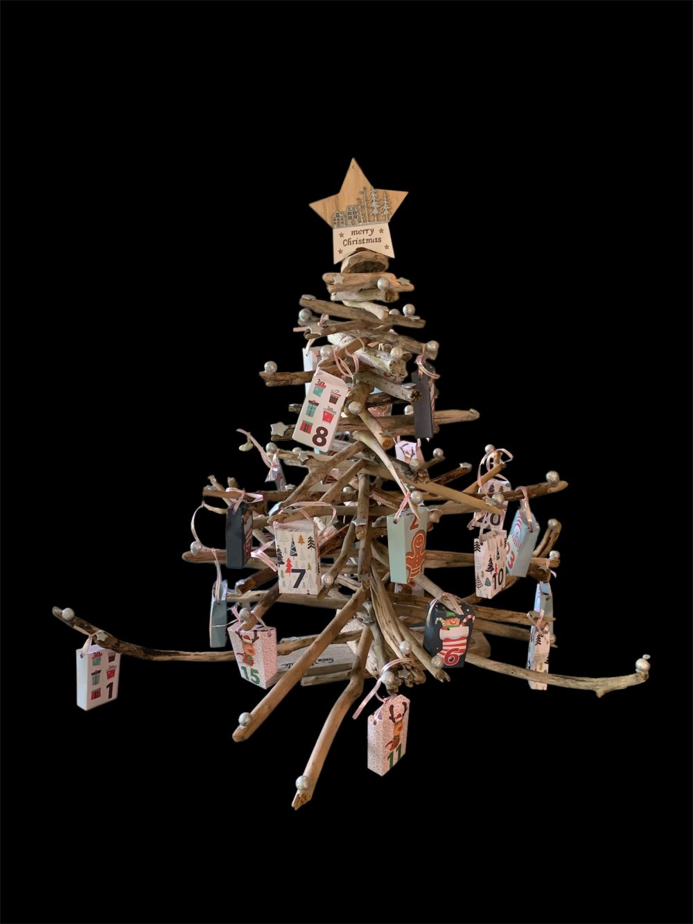 Arbre de Noël en bois flotté et calendrier de l'Avent