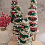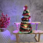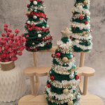 Sapin fait au crochet avec guirlande lumineuse 3 niveaux de lumière clignote rapide, lentement et statistique hauteur 22 cm idéal pour décorer un centre de table ou la maison.