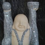 Sculpture mosaïque bouddha rieur– art déco fait main en mosaïque & verre – pièce unique pour intérieur / extérieur / jardin