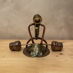 Homme en cuivre et laiton en train de réaliser son exercice de force