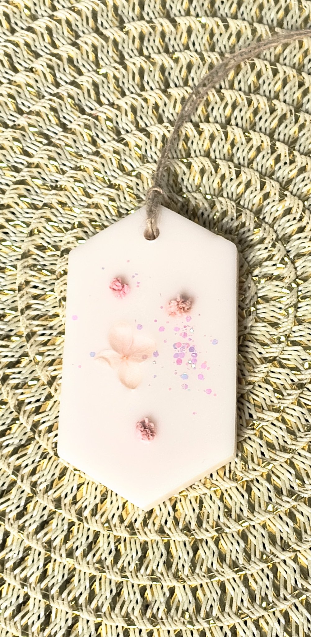 Suspension parfumée est fleurie minutieusement à la main avec de délicates petites fleurs