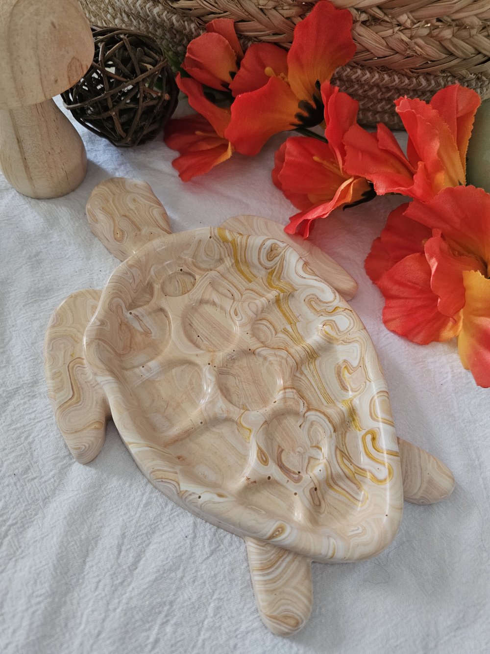 Apportez une touche naturelle et originale à votre intérieur avec ce vide-poche artisanal en forme de tortue. À la fois décoratif et pratique, il s’intègre parfaitement dans une entrée, une chambre, un salon ou même une salle de bain pour y déposer vos petits objets du quotidien.