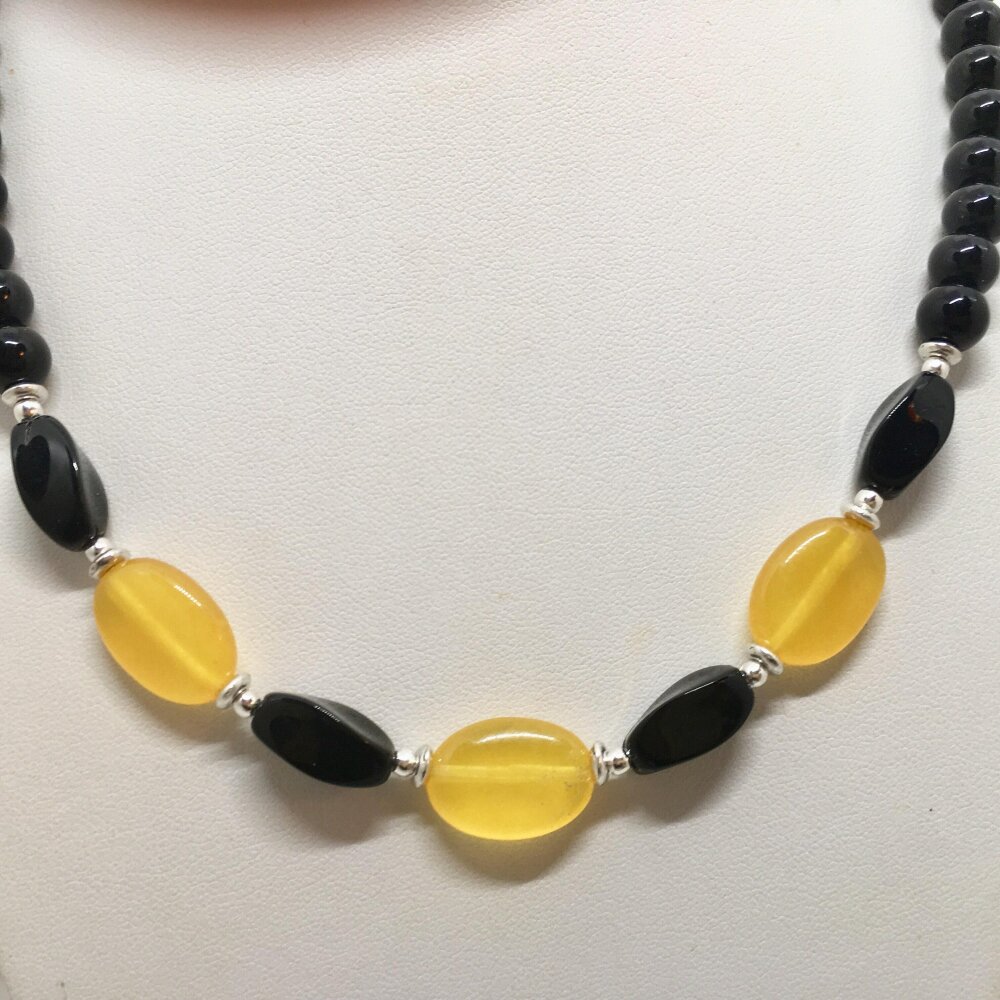 Très beau collier en onyx noir et topaze jaune. Femme.