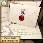 Pour ce qui est du cachet, il s’agit d’un véritable cachet de cire que je fixe seulement sur la partie du haut de l’enveloppe pour éviter de l’abîmer à l’ouverture de celle-ci. La lettre sera « P » pour Poudlard en VF, « H » pour Hogwarts en VO et "Z" pour la version néerlandaise (sauf demande de votre part).
