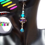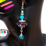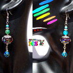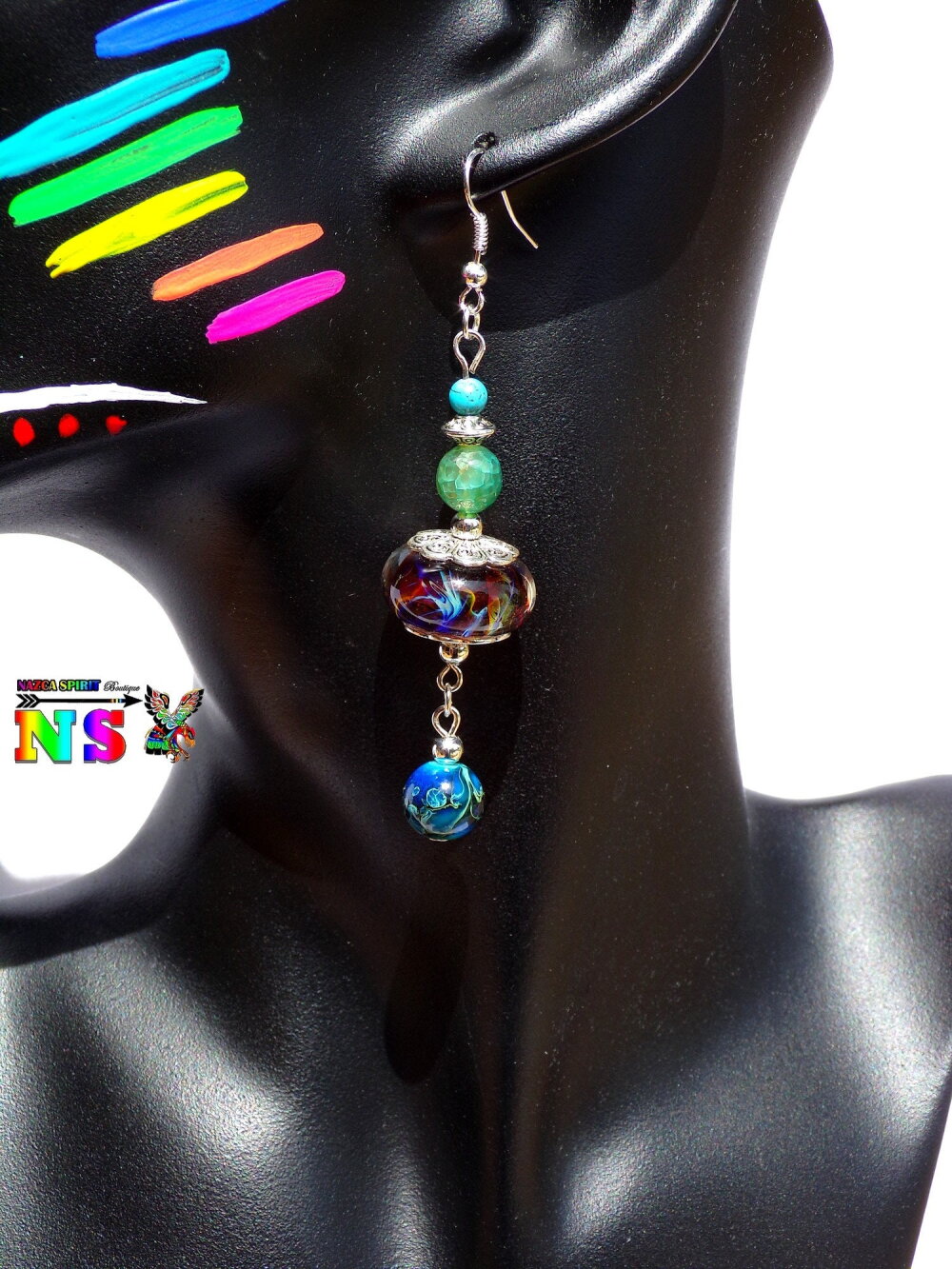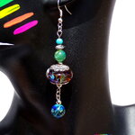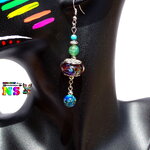 Il s'agit d'une création très originale ultra colorée et lumineuse. J'ai choisi de parer chaque pendant d'une perle ronde en agate veine de dragon de différente couleur pour apporter une note plus originale à cette création.