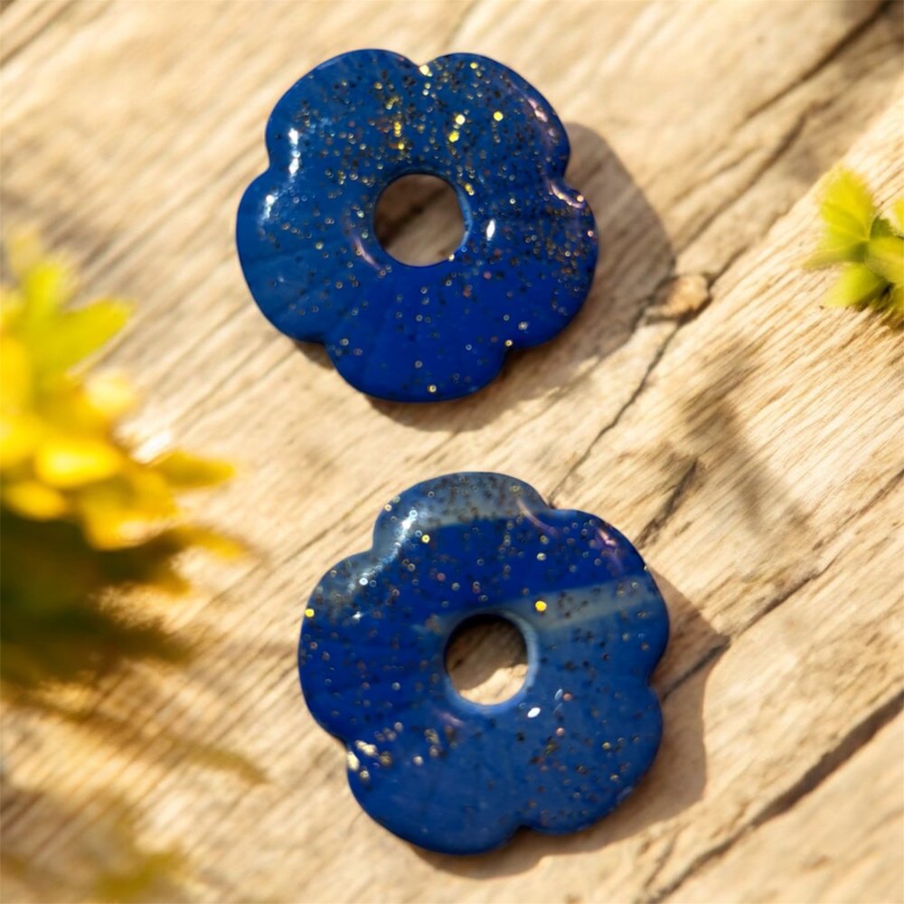 Paire de Pampille, fleurs bleu et or