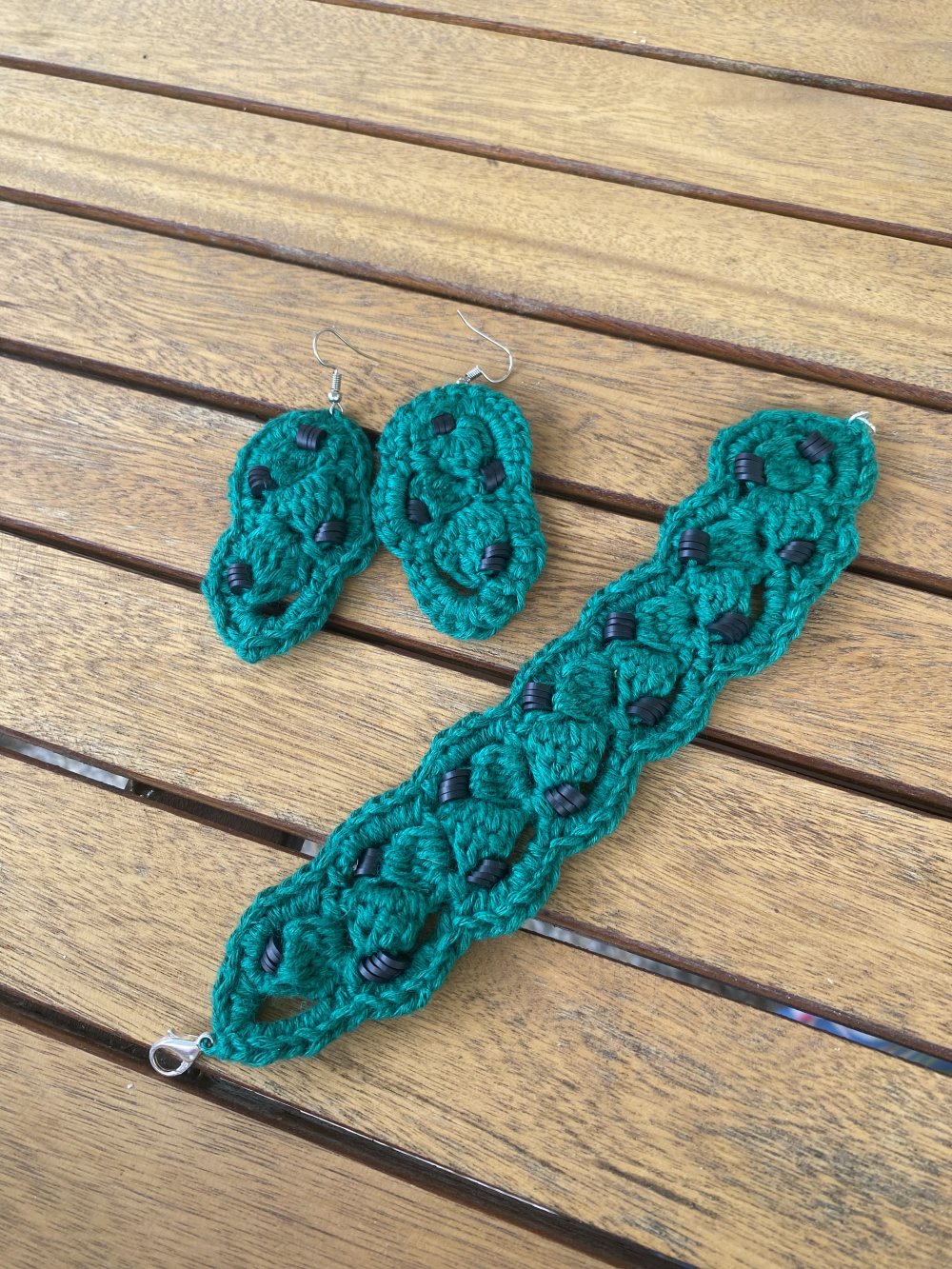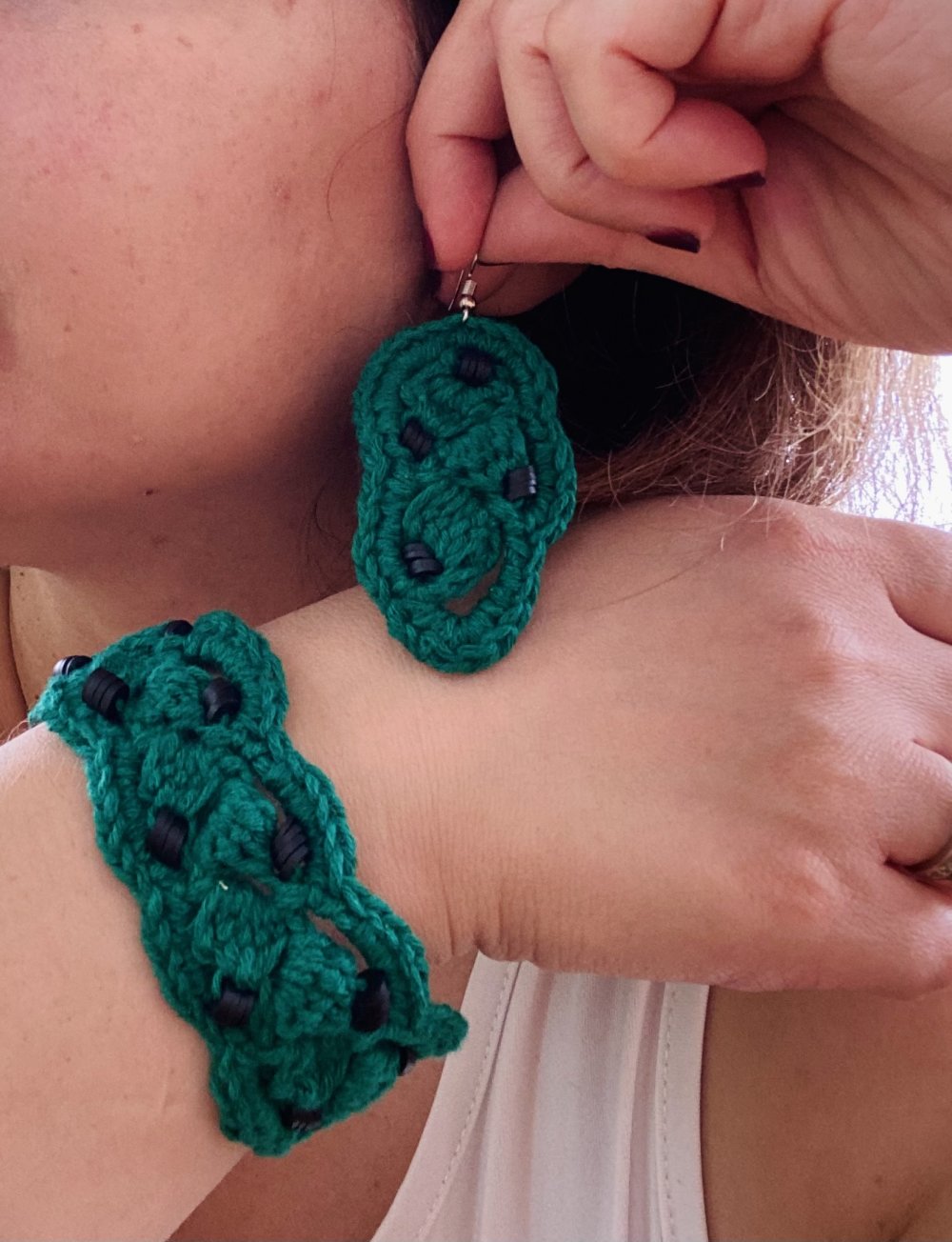 Elles sont réalisées au maximum dans un esprit écolo et récup (laine et coton de qualité chinés en brocante, perles de verre issues d’ancien bijoux).