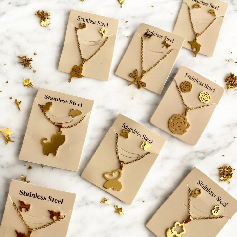 Ensemble de Bijoux collier et boucles d’oreille en Acier Inoxydable 304, Collier et Boucles d'Oreilles