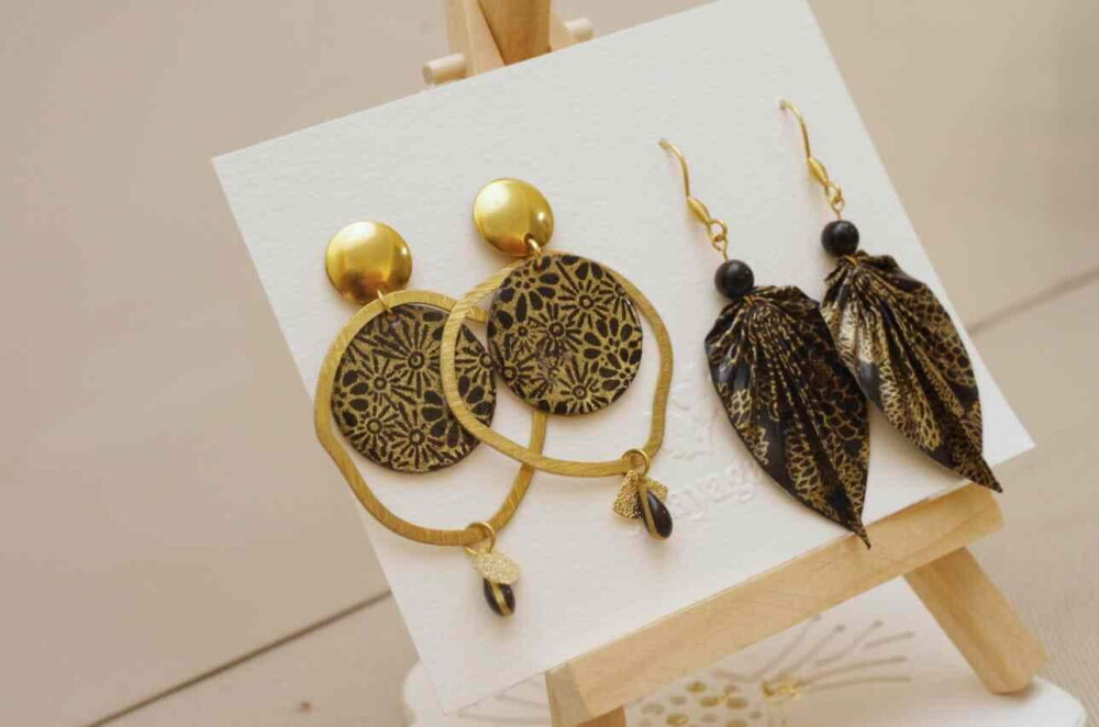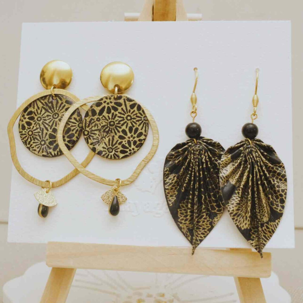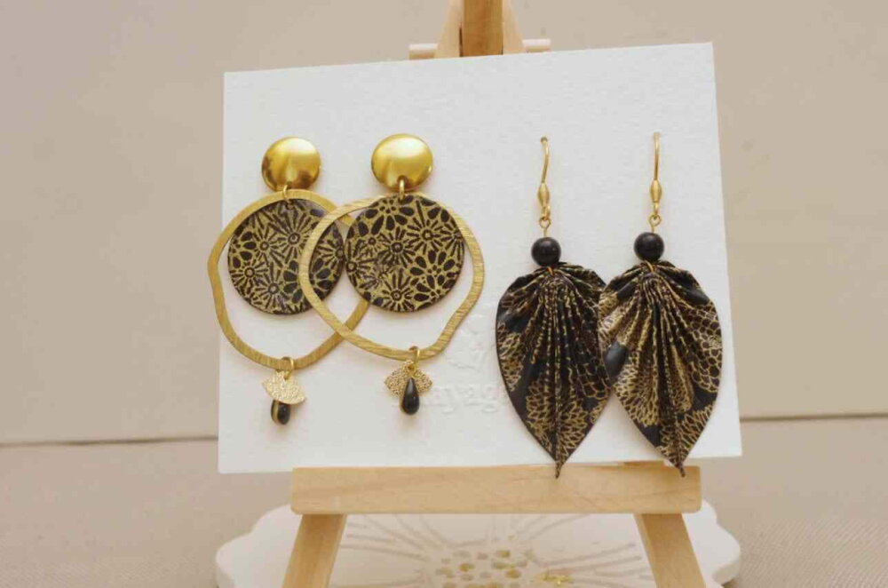 1 paire de boucles origami feuille en papier washi
