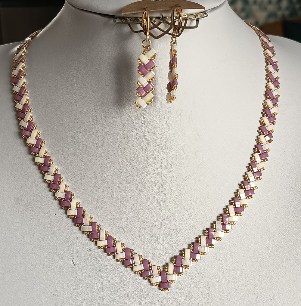 - Collier ras du cou tissé à la main en perles Miyuki Half Tila et Miyuki Delica. Il mesure 40 cm + 5 cm de chaine d'extension. le tout en acier inoxydable