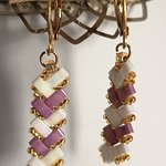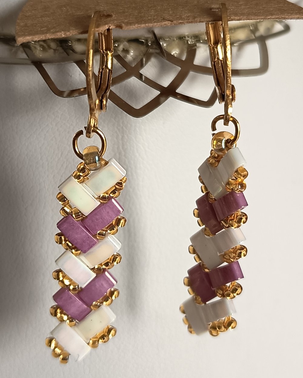 - Boucles d'oreilles tissées à la main en perles Miyuki Half Tila et Miyuki Delica.