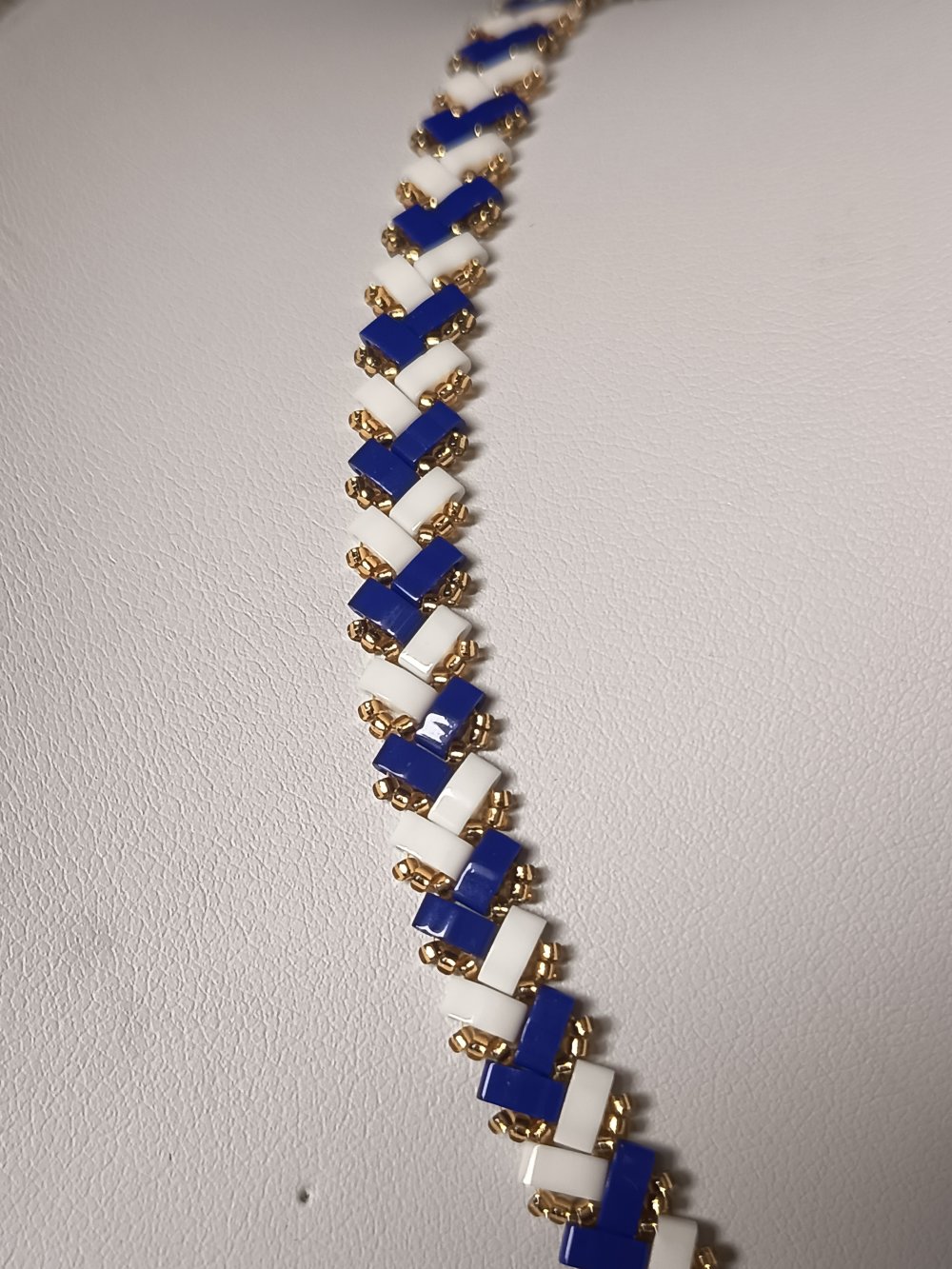 - Collier ras du cou tissé à la main en perles Miyuki Half Tila et Miyuki Delica. Il mesure 40 cm + 5 cm de chaine d'extension. le tout en acier inoxydable
