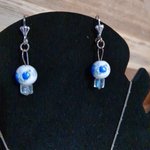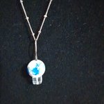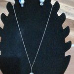 Jolie parure avec perles de porcelaine blanche et motif fleurs bleues, et perles de verre transparent