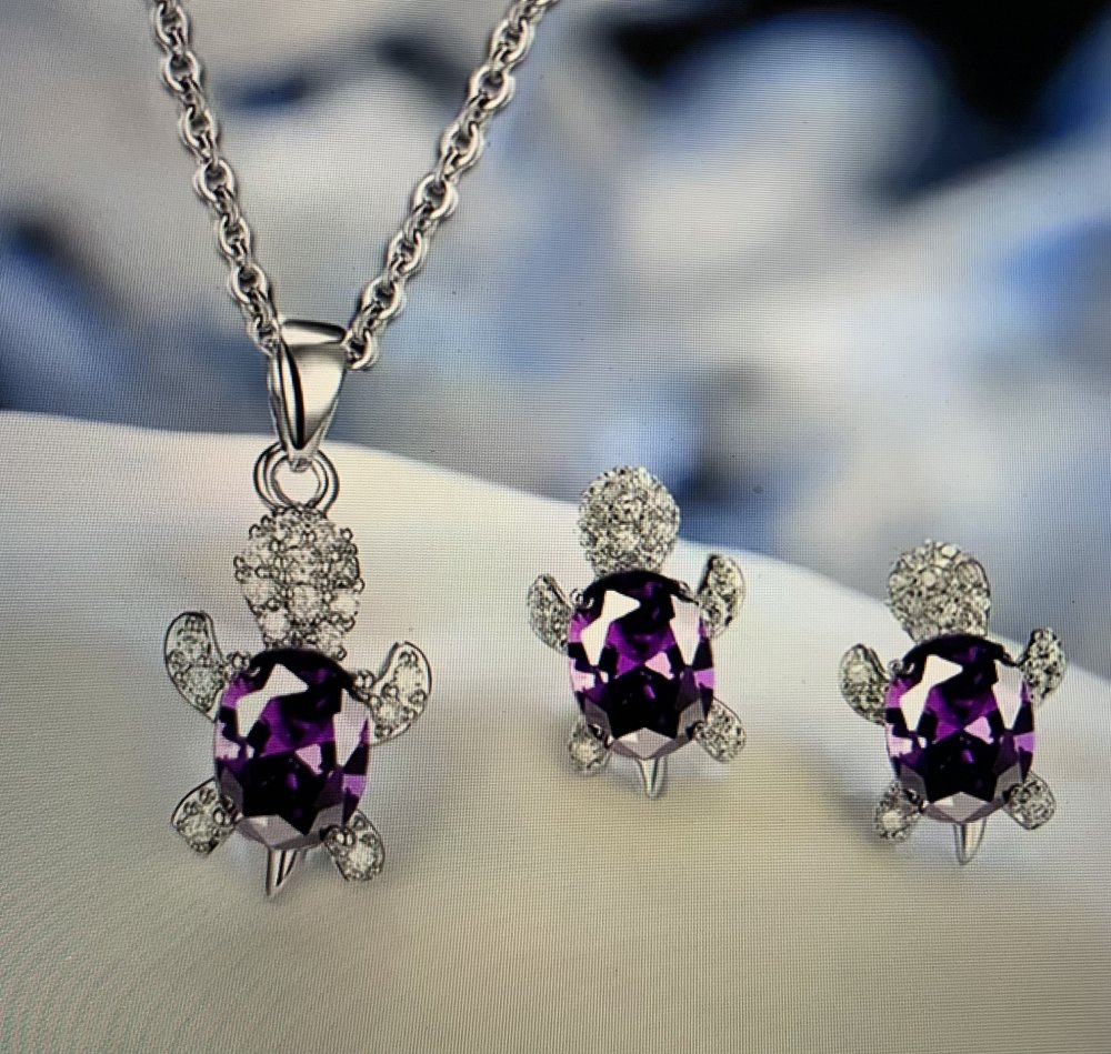 tortues argentées et strass amethiste