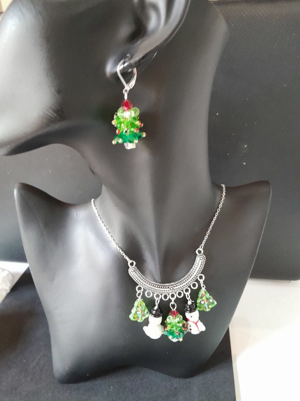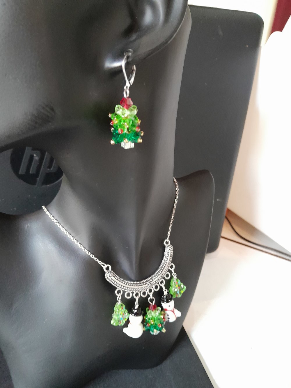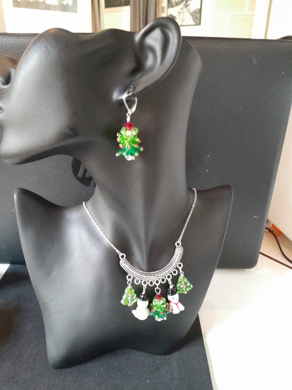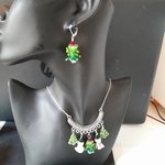 - d'un collier en métal avec des breloques en verre d'environ 2 cm avec sa chaîne de 40 cm