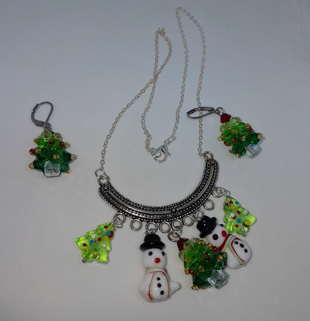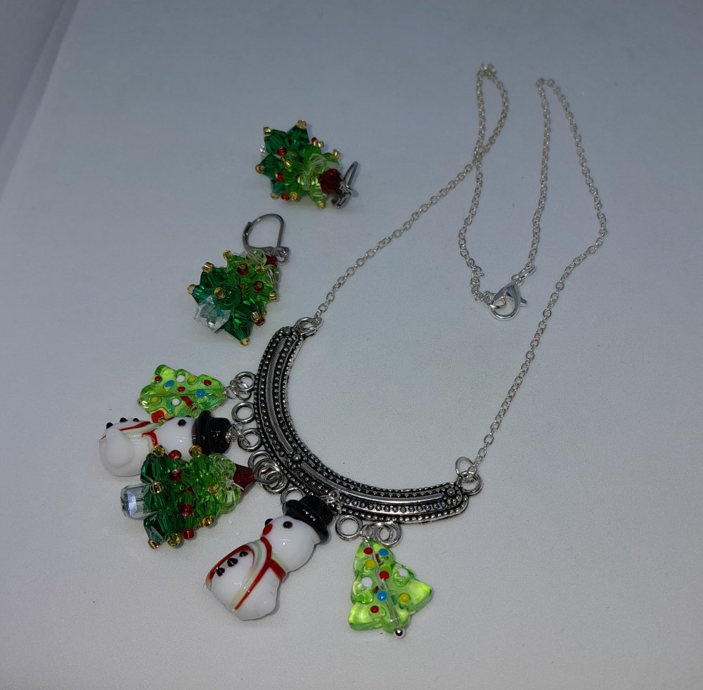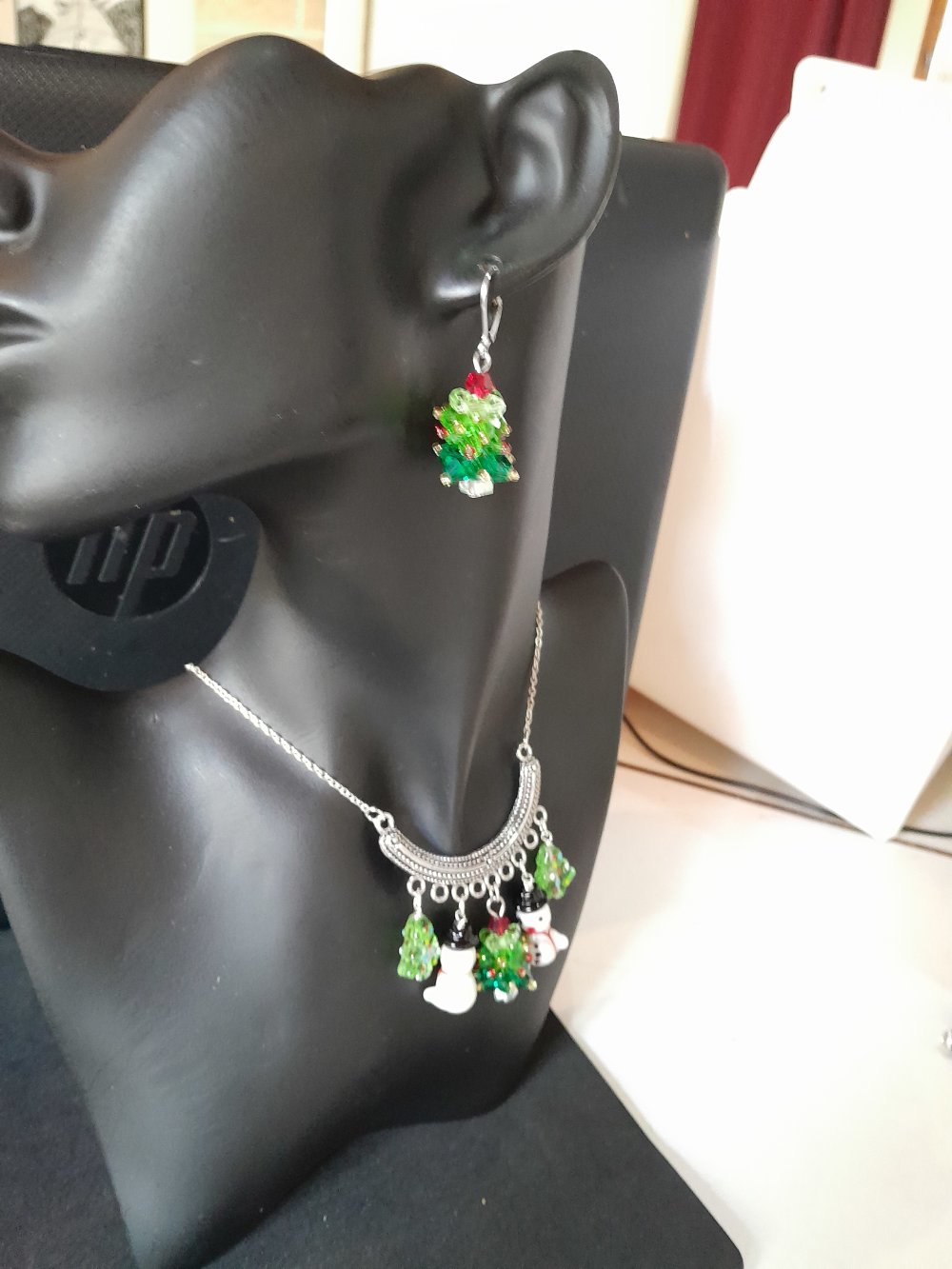 - d'un collier en métal avec des breloques en verre d'environ 2 cm avec sa chaîne de 40 cm