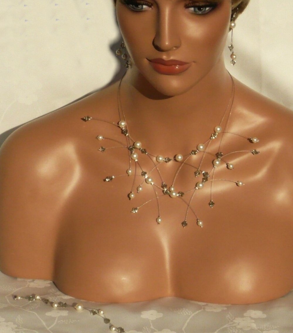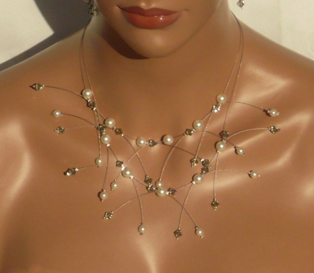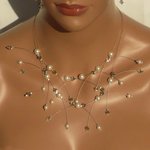 Parure double étincelles gris et ivoire. Bijoux mariage. Parure mariée.
