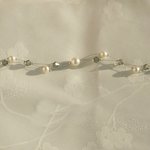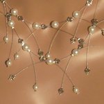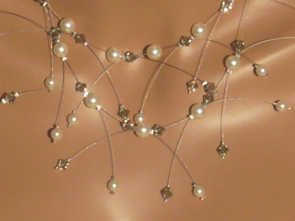 En rondes nacrées 6, 8 mm et toupies 6 mm en cristal de swarovski, sur fil câblé argenté, sans nickel.