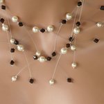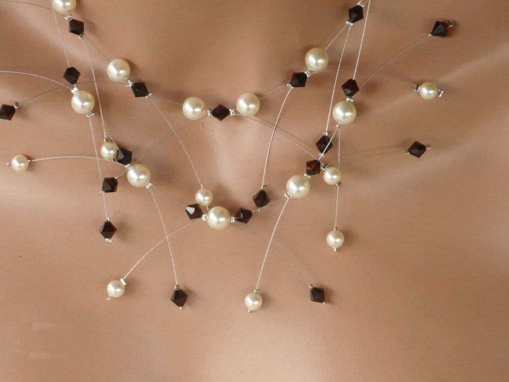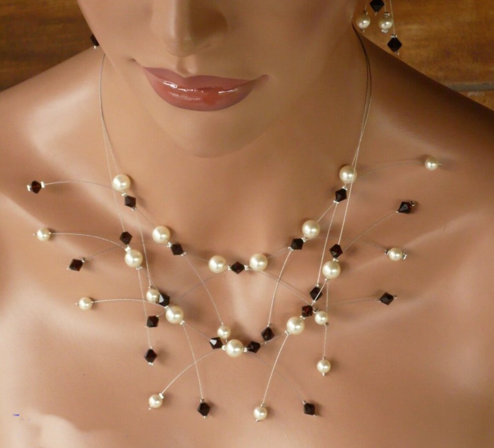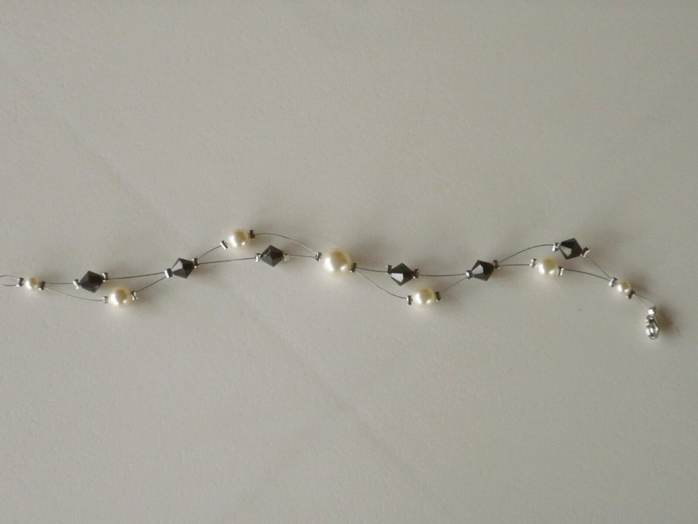 Fabriqué à la main, les bijoux sont surtout fait avec du fil câblé ou nylon, les perles sont en cristal de swarovski, verre de bohème.