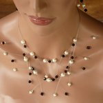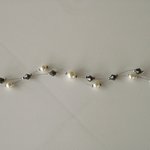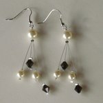 En rondes nacrées 6, 8 mm et toupies 6 mm en cristal de swarovski, sur fil câblé argenté, sans nickel.