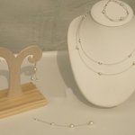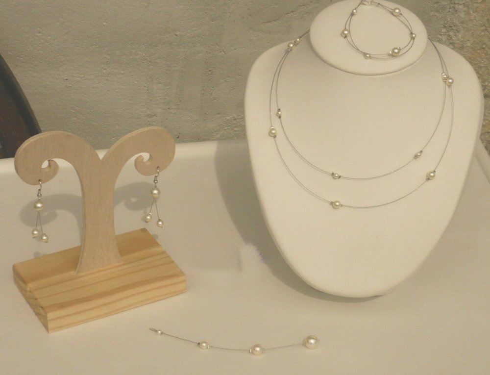Fabriqué à la main, les bijoux sont surtout fait avec du fil câblé ou nylon, les perles sont en cristal de swarovski, verre de bohème.