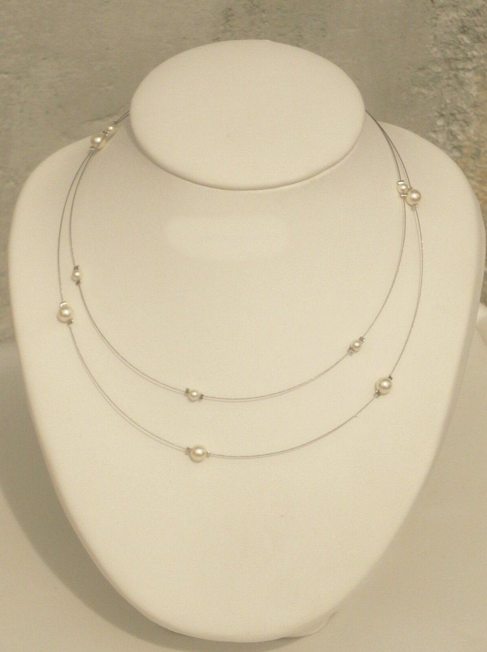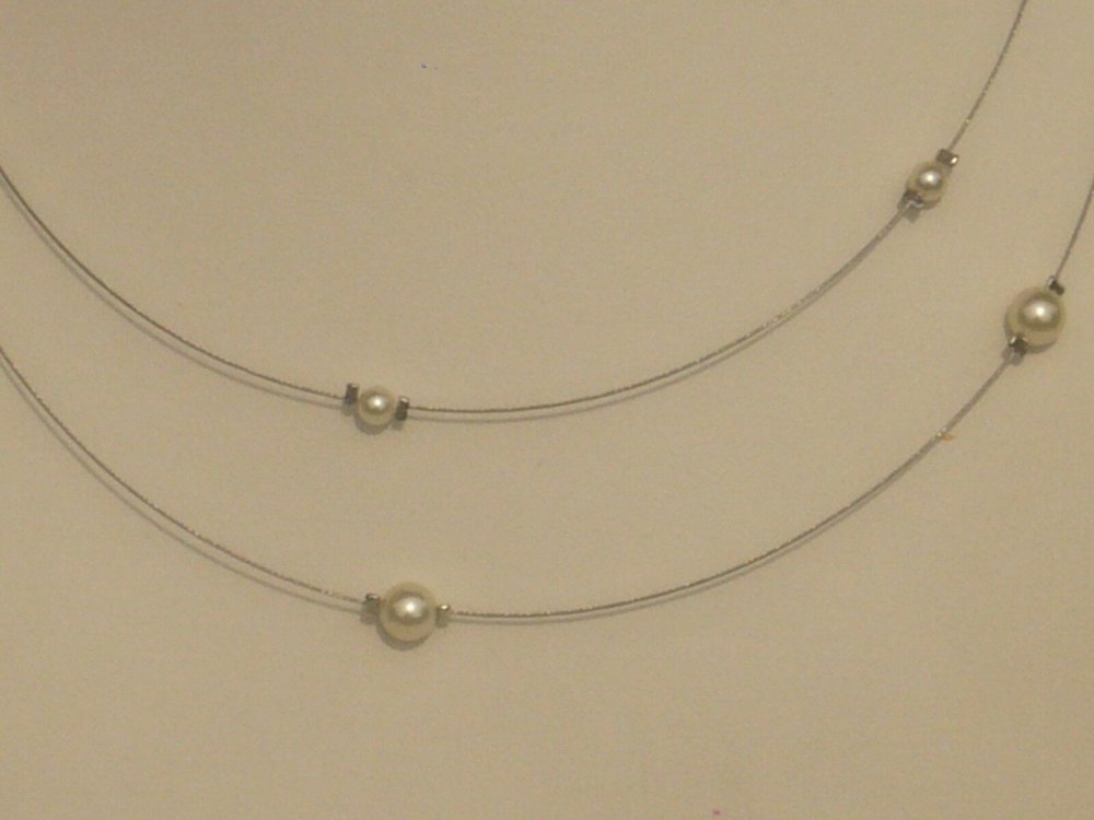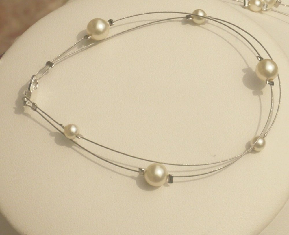 En ronde nacré 4, 6, 8 et 10 mm en cristal de swarovski, sur fil câblé argenté, sans nickel.