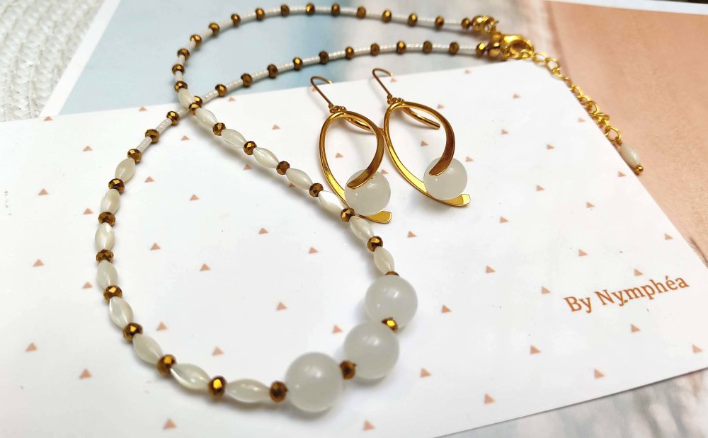 ✨ Une parure chic et élégante, l’alliance parfaite du blanc et du doré.
